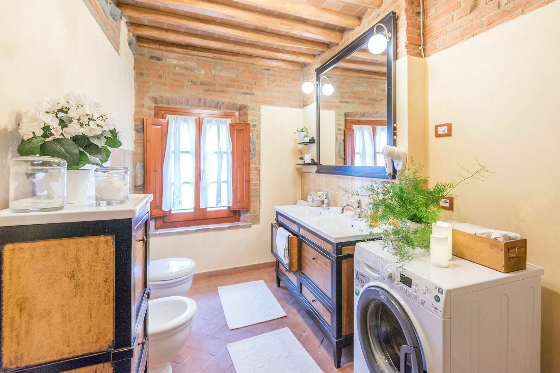 Första våningen: stort vinden med 2 dubbelsängar och 1 enkelsäng, 2 badrum med dusch.