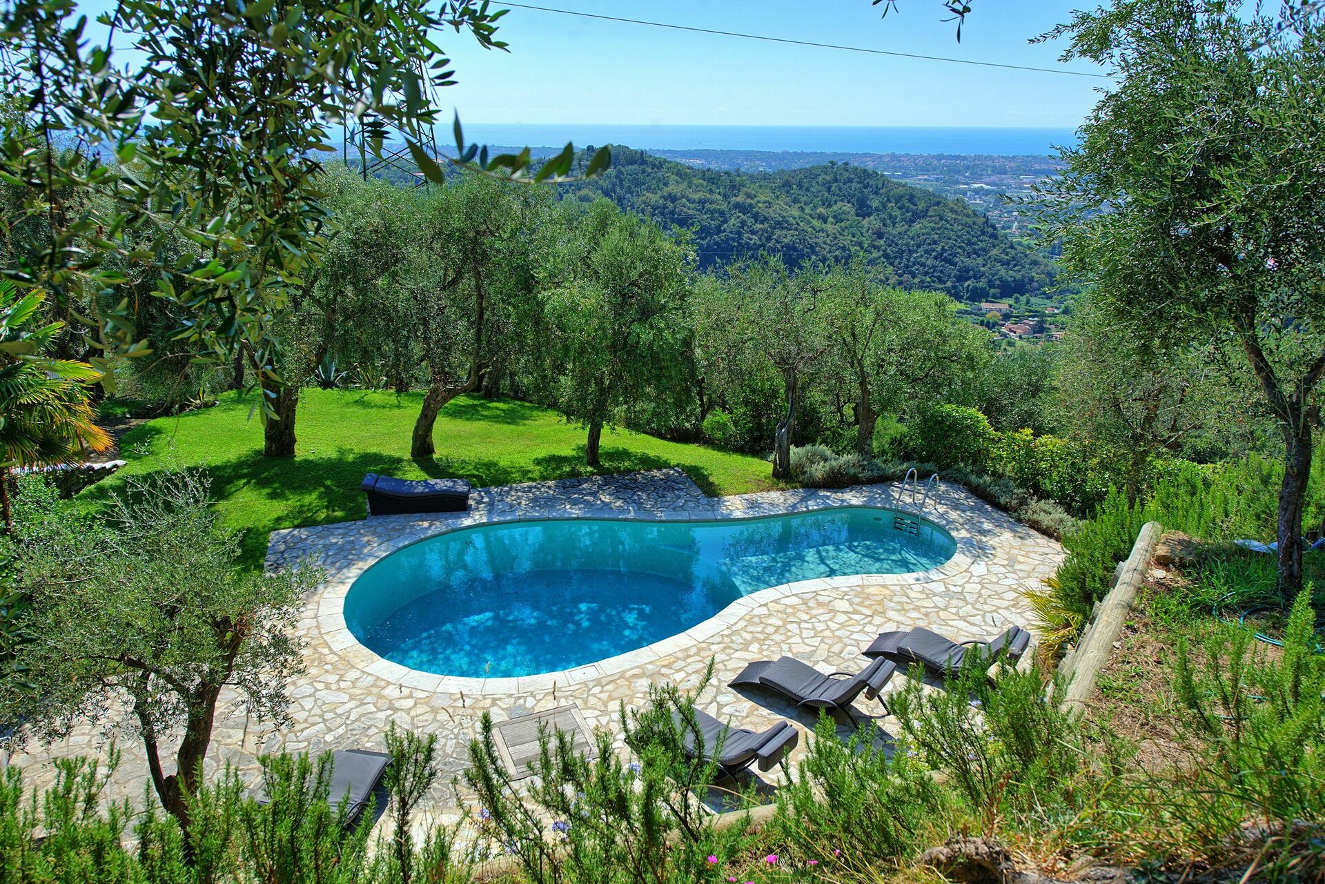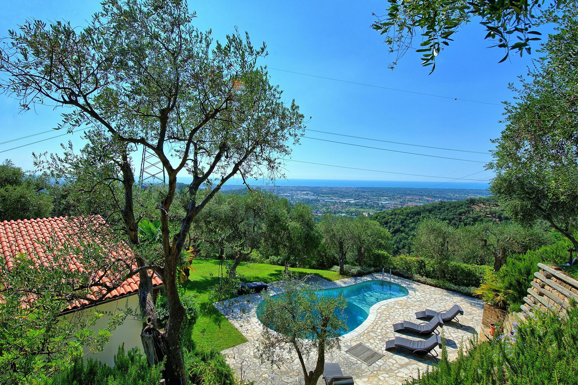 Vackert semesterhus med pool på backarna bakom Versilia kusten i Toscana. Fastigheten är i lugna omgivningar och är totalt 8000 kvm. Det omgivande landskapet består av gamla olivlundar och du har utsikt över kusten från fastigheten. Husets ägare är en känd italiensk inredningsarkitekt som i stor utsträckning kännetecknar husets inre.