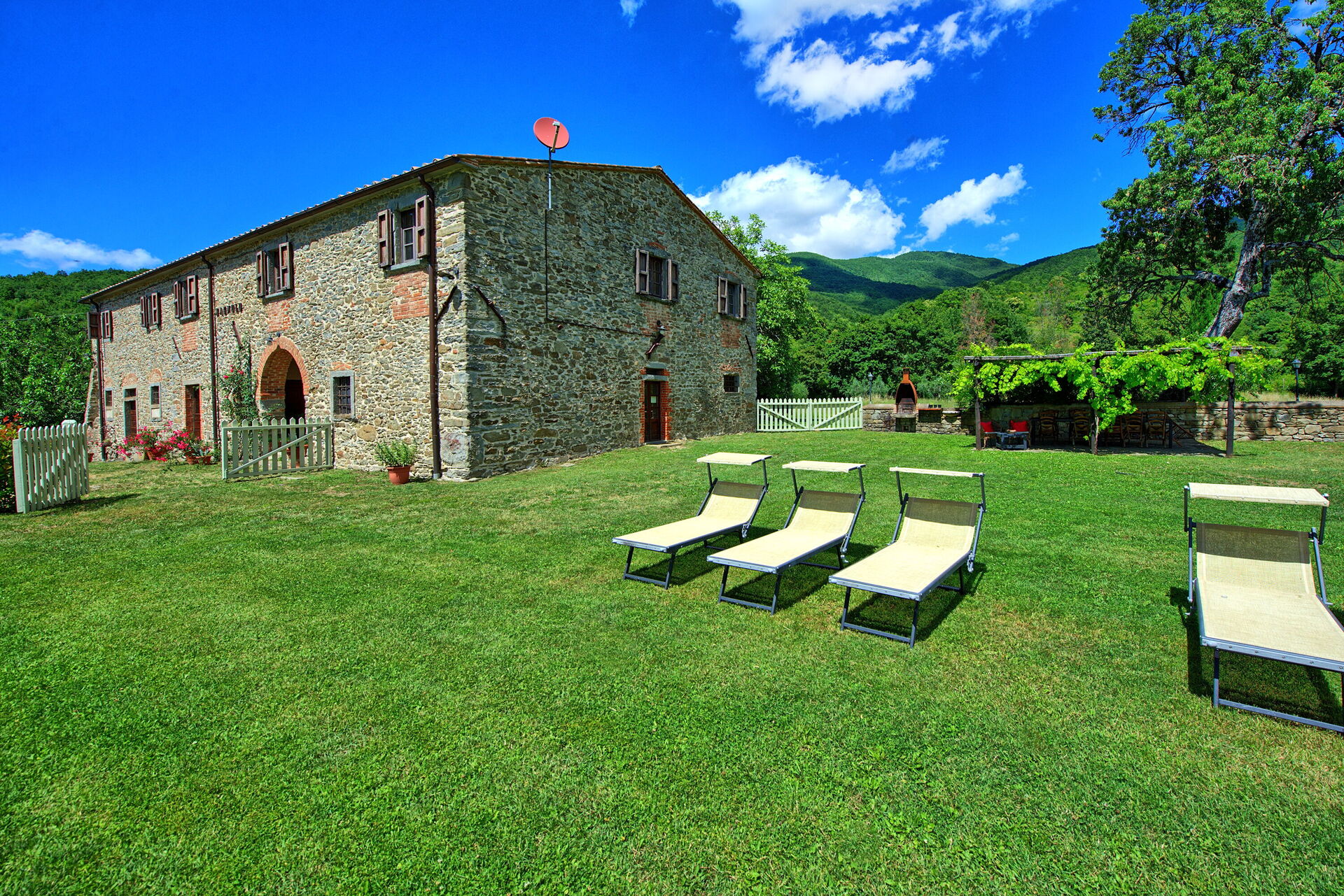 Wunderschön am Hügel gelegen, die nächsten Nachbarn sind ein paar Hundert Meter entfernt (Laute Musik stört niemanden). Achtung: steile Zufahrt über einen Feldweg, aber mit normalen Kleinwagen machbar. Das Haus ist sehr schön, im alten toskanischen Stil erbaut und in einem super Zustand. 7 große Schlafzimmer sind perfekt für 14 Erwachsene (plus 2 mehr) und das Haus bleibt angenehm kühl. Wunderschöner Sitzbereich unter der Pergola mit Grillstelle. Und ein großer Pool mit ausreichend Liegen. Vermieter ist nett, kommt 2 Mal pro Woche vorbei, reinigt den Pool und nimmt den Müll mit (sehr praktisch). Dementsprechend kann ich die Villa sehr empfehlen.
