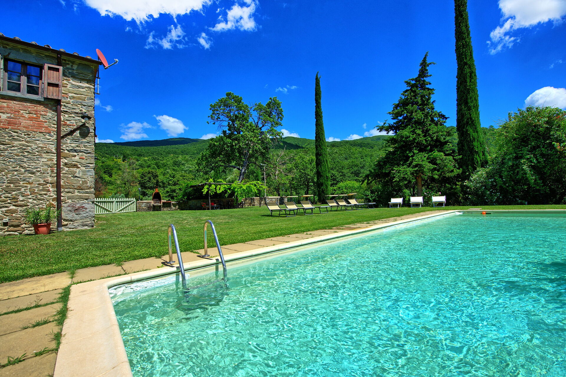 We had a wonderful week in Villa Poggiolino. We booked it for 14 people and had more than enough room for everybody. Also the amount of bathrooms fits perfectly for such a big group. The kitchen plus the grill also were well enough equipped to cook for everybody. The rooms were tidy and had comfortable beds. The pool was cleaned and the garbage was collected several times by the owner. Very nice service!