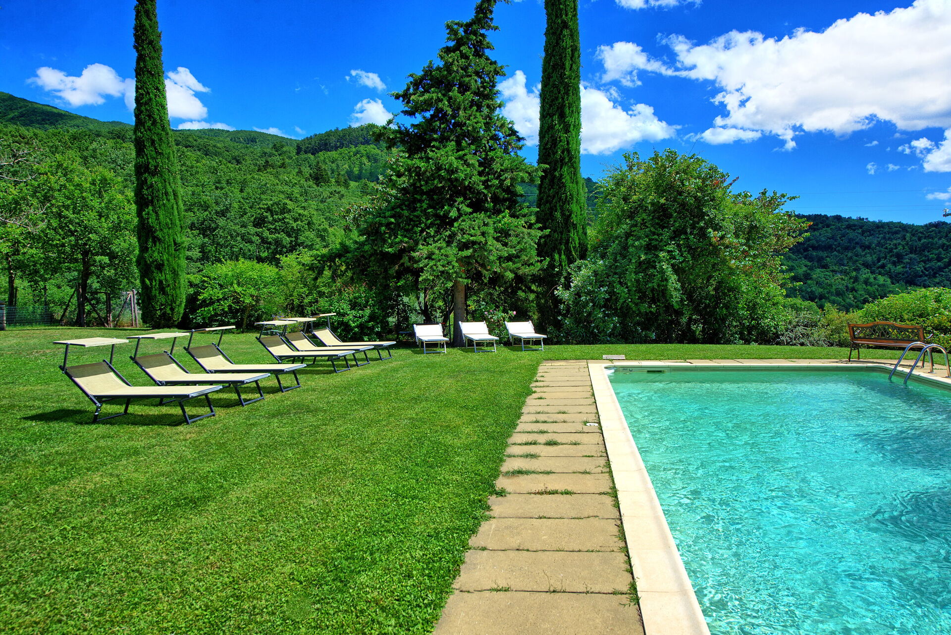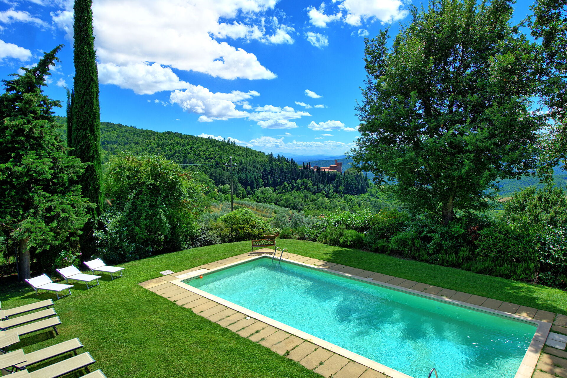 A very very beautiful villa, very well taken care of , in a beautiful surrounding. Everyone from age 14 to 82 had a great time. The photos were very accurate, the interior is beautiful and the beds very comfortable, not too soft. The pool was very clean and got cleaned every other day. Some bedrooms may only be reached by passing through another bedroom. It is pure Toscana feeling. As the property lies in the hills the way to reach it is a little steep and the view is gorgeous. And we were so well taken care of by Sue, who fulfilled any wish we had and helped us in any way possible. Already looking forward to our next stay.