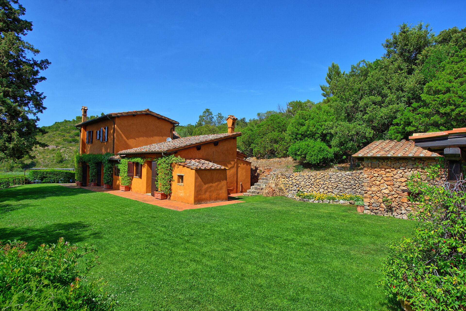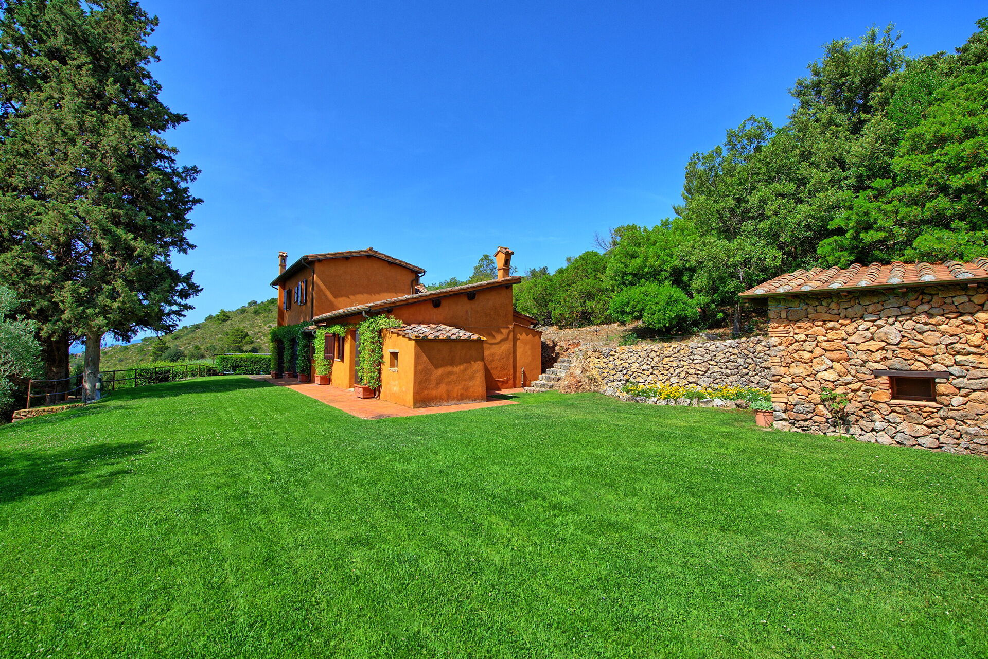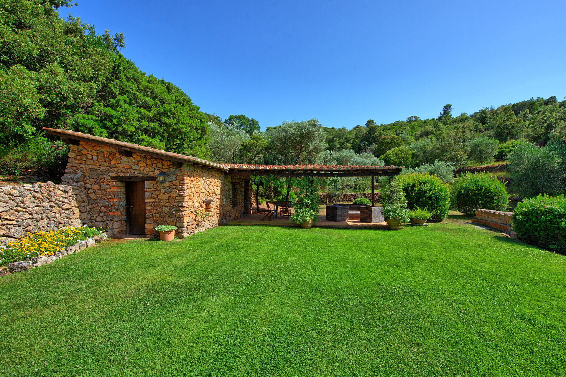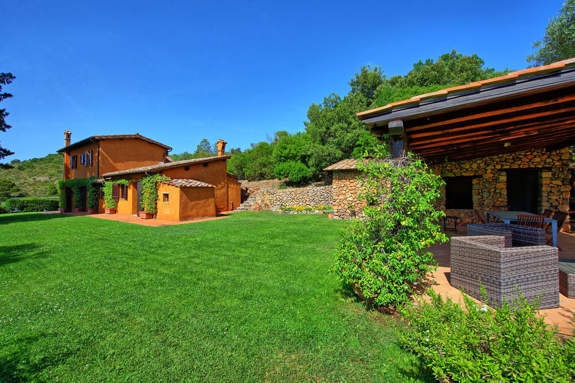 Semesterhuset ligger bara 1 km från Porto Santo Stefano, på den berömda udden Monte Argentario. Området är känt för sin vackra kustlinje och Maremma-regionens medelhavsskrubbevegetation och charmiga städer.