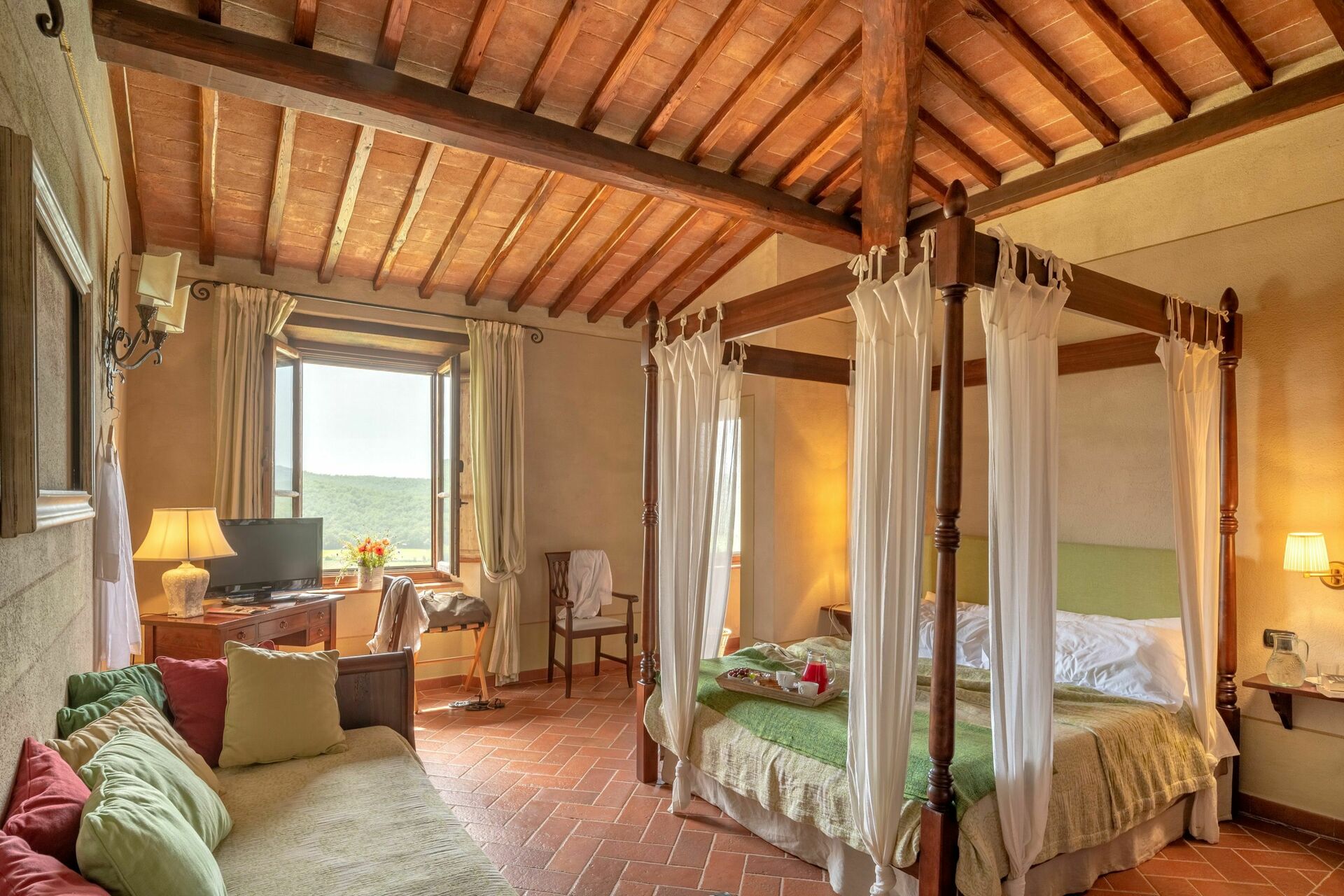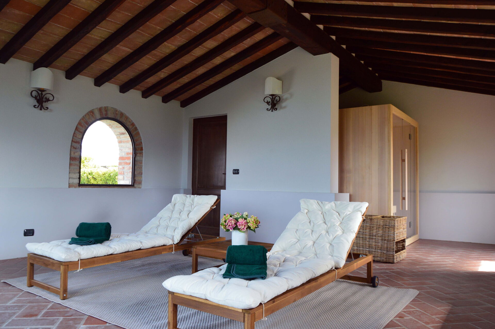Denna vackra fastigheten med en pool öster om Siena rymmer 18 personer och består av en bondgård och två lador som har restaurerats till en lyxvilla med två annex. Det ena är en separat bostad. Det andra är ett rum med bubbelpool (för 3/4 personer).
