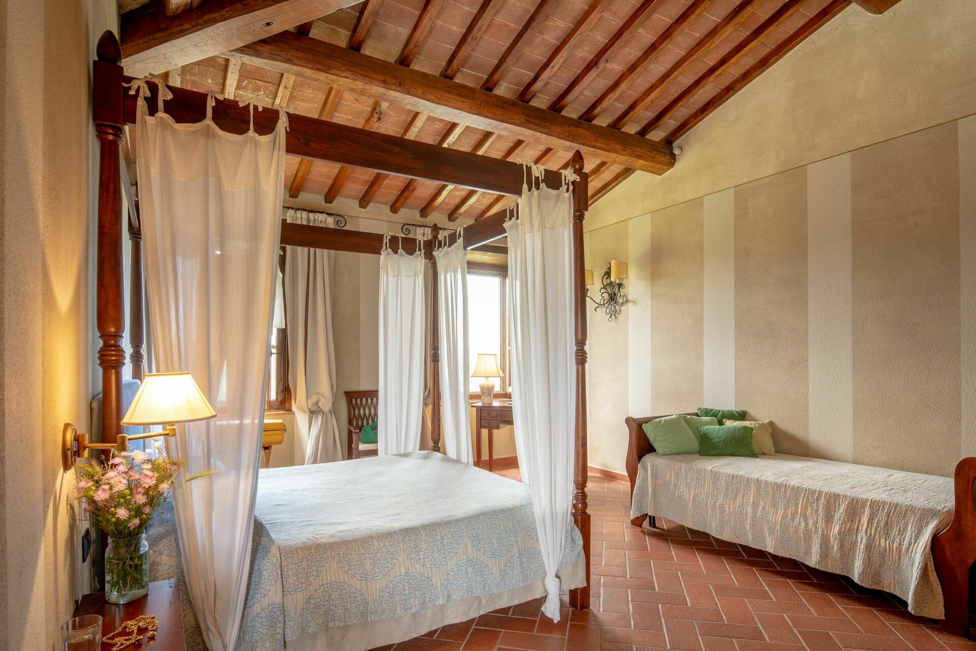 Detta exklusiva huset ligger i Chianti och erbjuder charmig utsikt över den vackra landsbygden i denna del av Toscana. Här kan du njuta av vackra byar, god mat och vin (Chianti Classico), samt besöka de många sevärdheterna och historiska platserna som Toscana är kända för.