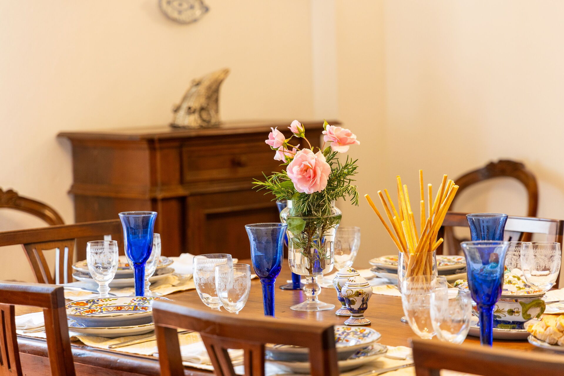 Great location, close to major tourist attractions, knownd and less known, yet all amazing (Cortona, Arezzo, Siena, the monastery of Camaldoli, just to name a few), in the middle of the Tuscan countryside. Property is surrounded by fields (with amazing sunflowers and vineyards !)and nested among trees, providing shelter from the sun. Rooms are very spacious, beautifully furnished with gorgeous antiques, carpets and paintings. Thick walls and wooden shutters provided naturally a cool temperature in the house (even in August we rarely used AC, which indeed is available and very efficient).Multiple separate kitchens available, each with cutlery, plates, pots and dishwasher. Gorgeous outside table for dining, large walking areas with olive trees and swing outside the house. Beautiful, large independent swimming pool, cleaned daily by management. A short drive away from supermarkets, pizzerias, restaurants and gelaterias. Truly a gem for whoever values the beauty and silence of the country side, and yet enjoys all that Tuscany is famous for (art, history, great food, medieval/former Etruscan hilltop towns like Cortona, breath taking panoramas you could see in a Renaissance painting). Ideal setting for a large gathering, where each group has its own space and yet can conveniently gather to enjoy spending time together. I would go back in a flash!
