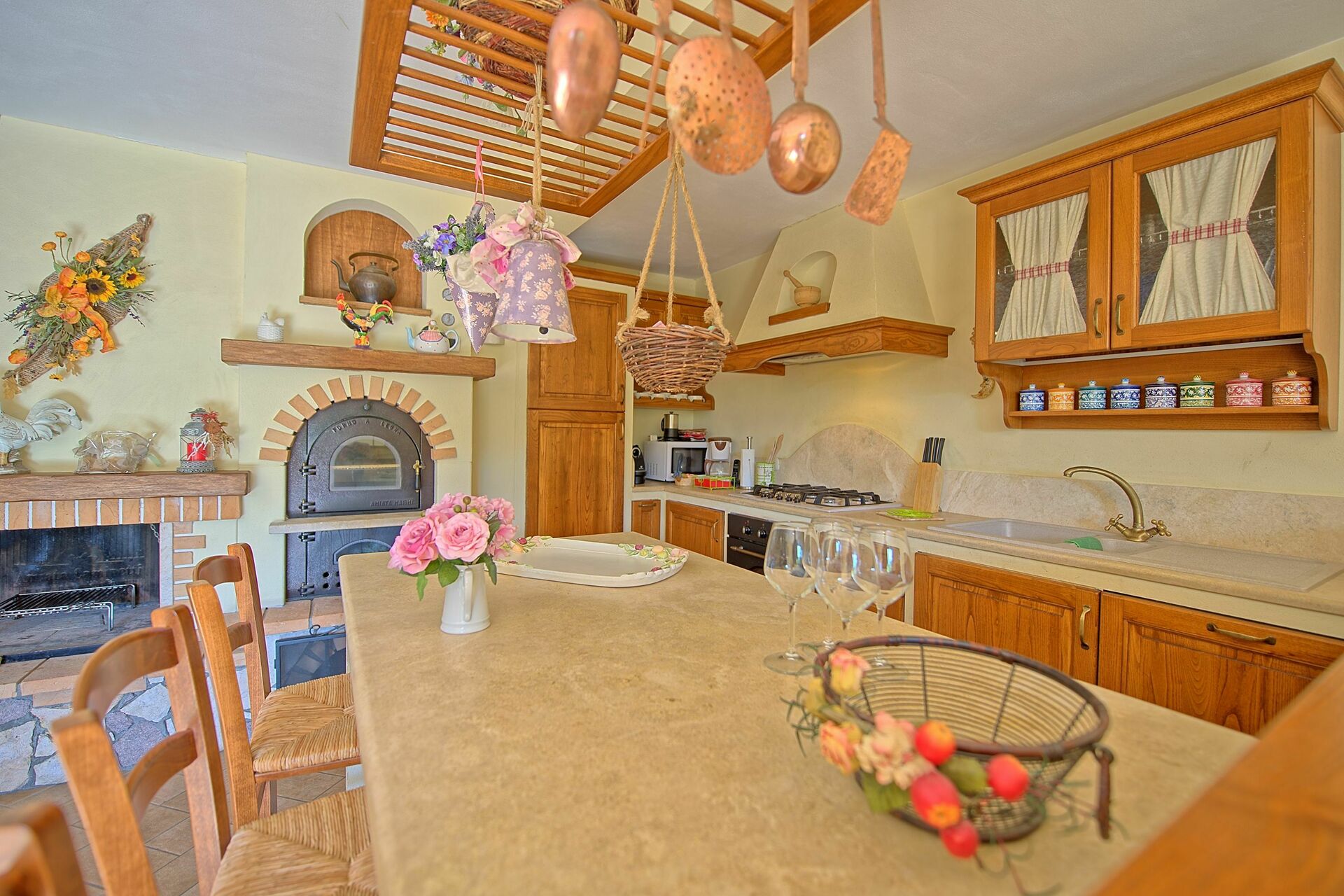 Rustikale, toskanische Bauerneinrichtung, sehr passend zum Haus und der Umgebung. Sehr schöner Garten in ruhiger Panoramalage mit tollem Schwimmbad.