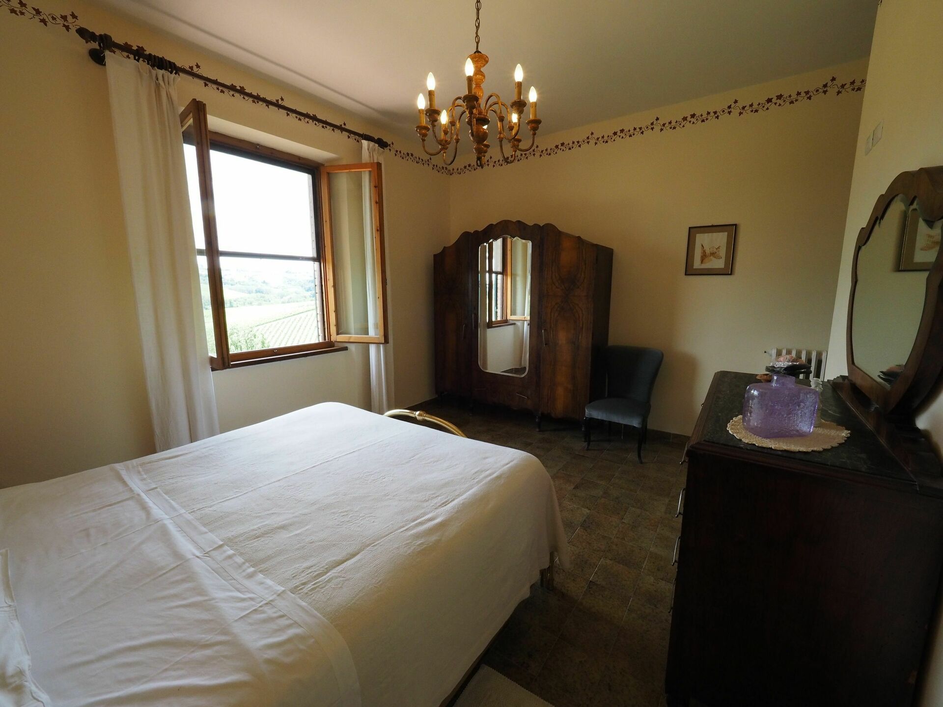 Lägenheten ligger i det vackra Toscana med panoramautsikt över den charmiga landsbygden runt San Gimignano. Här kan du njuta av naturen, historien och mattraditionerna som är typiska för Chianti.