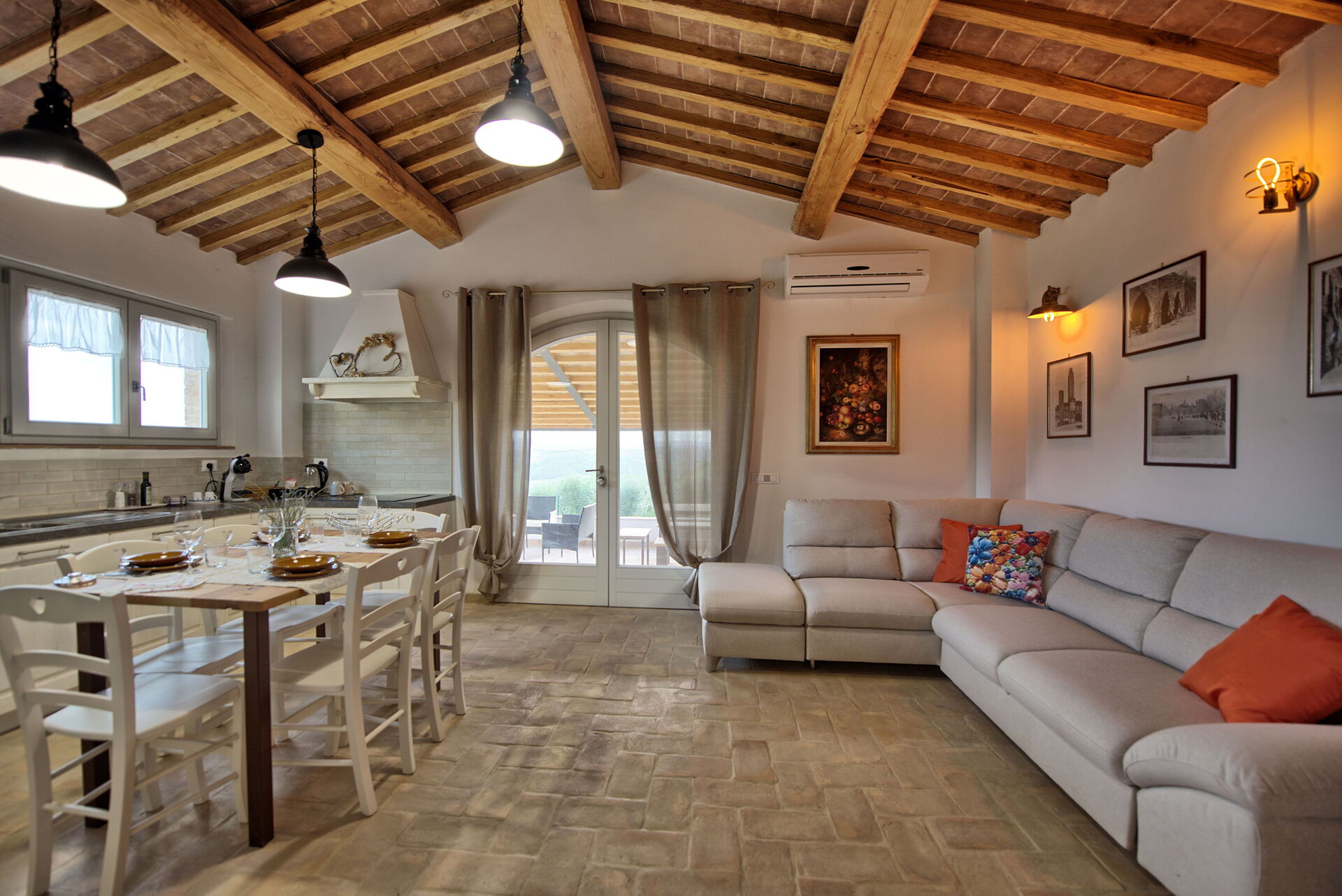 Om du letar efter ett semesterhus i Toscana kommer detta charmiga och välutrustade lanthus inte att göra dig besviken. Interiören är modern och praktisk, medan exteriören erbjuder panoramautsikt och är utformad för att kunna avnjutas året runt.