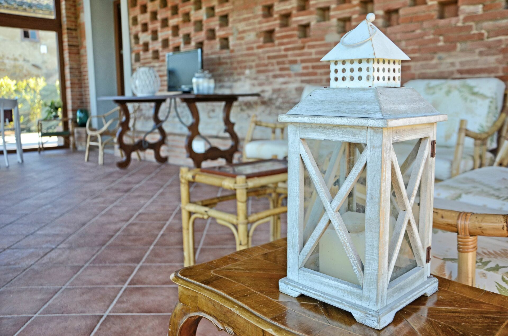 Semesterhuset är vackert inrett med 3 sovrum, 3 badrum och ett trevligt vardagsrum med stora glasfönster med utsikt över trädgården, poolen och den omgivande landsbygden.