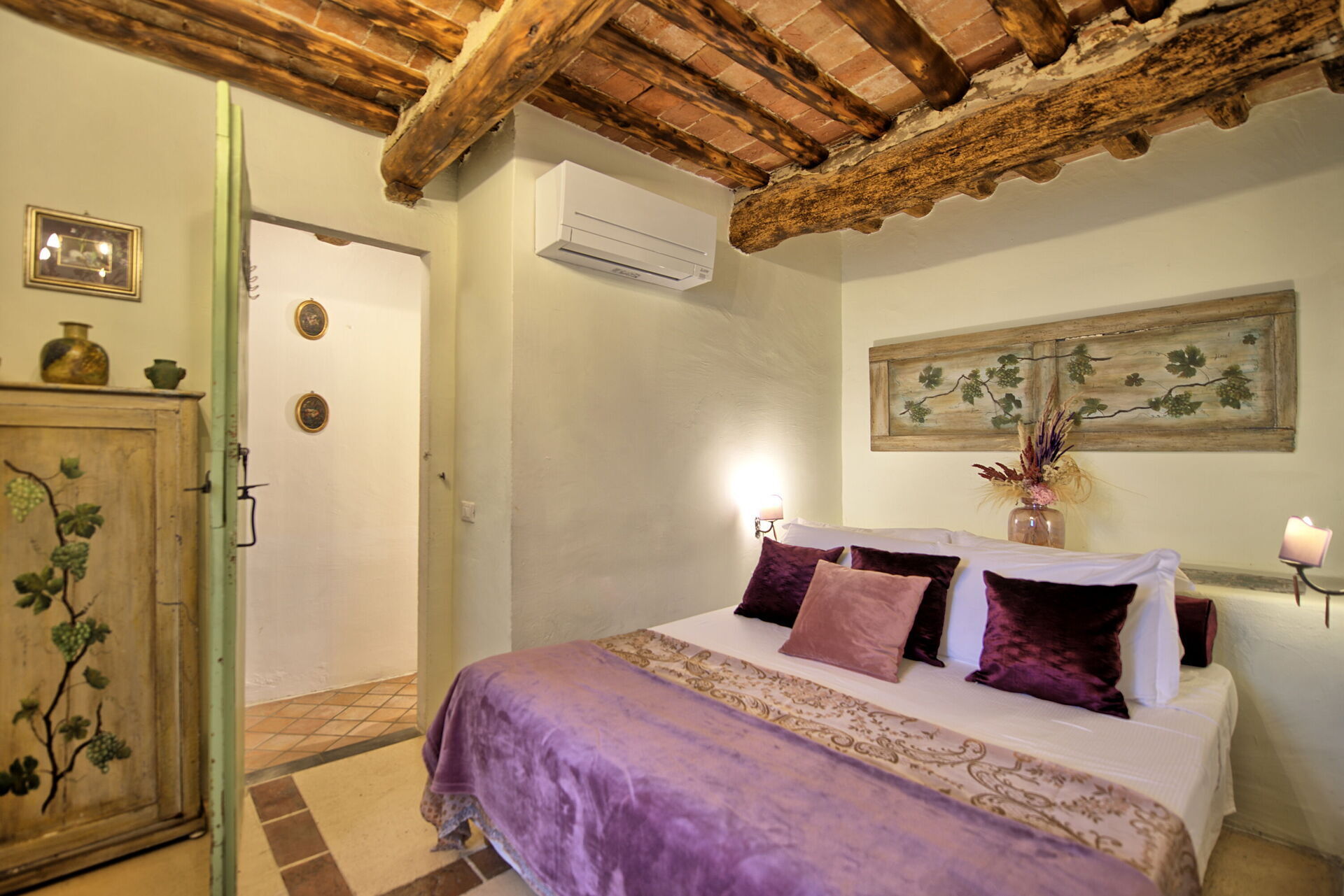 Bottenvåningen: sovrum med panoramautsikt och en privat badrum med dusch och ett litet pentry (mini-bar och mikrovågsugn) och tillgång till en trevlig privat terrass dubbel.