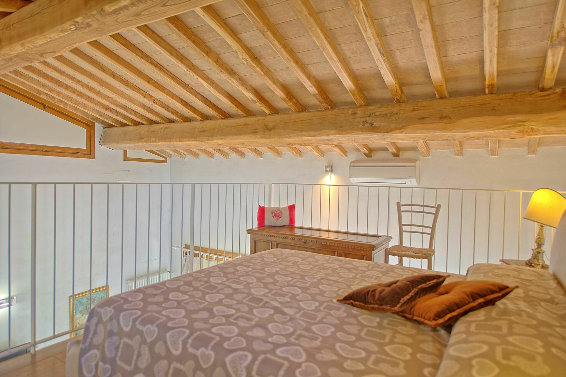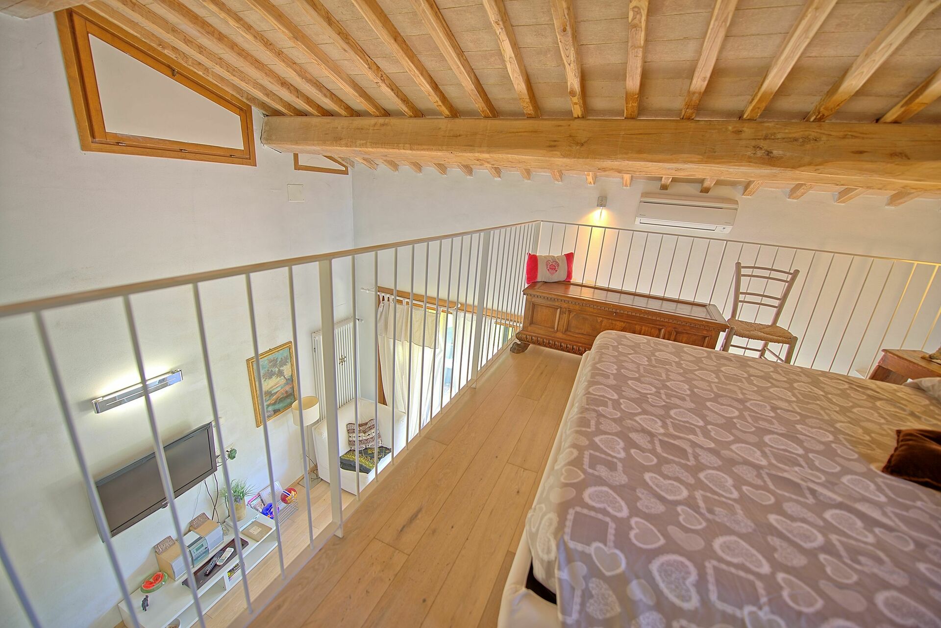 Första våningen (öppet galleri med utsikt över vardagsrummet): dubbelsäng.