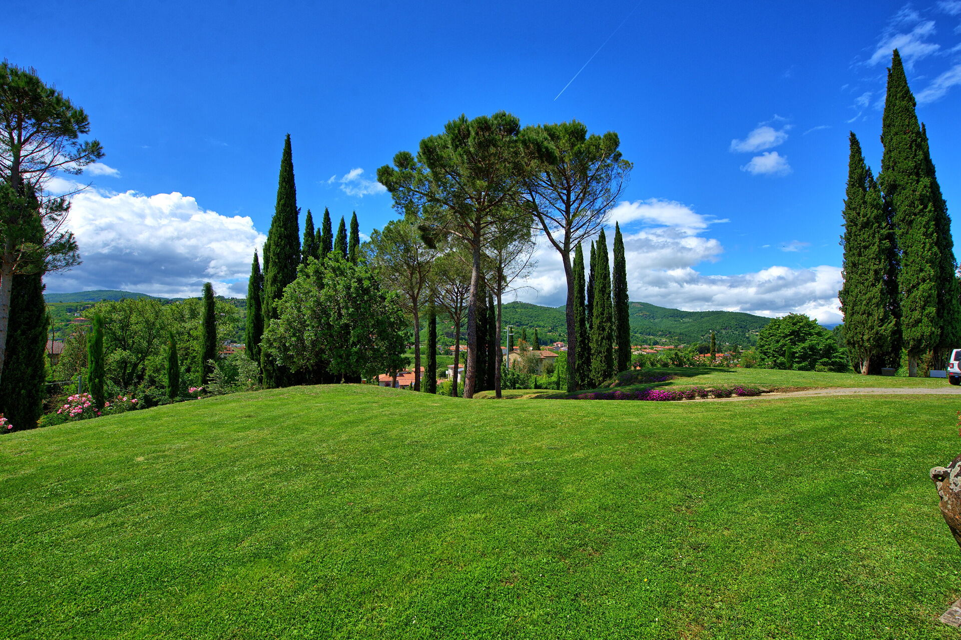 Avstånder: Arezzo 10 km. Därifrån kan du ta tåget till Rom och Florens; Cortona 40 km bort; Trasimeno sjön är 45km; Siena 80km; Perugia 90km.