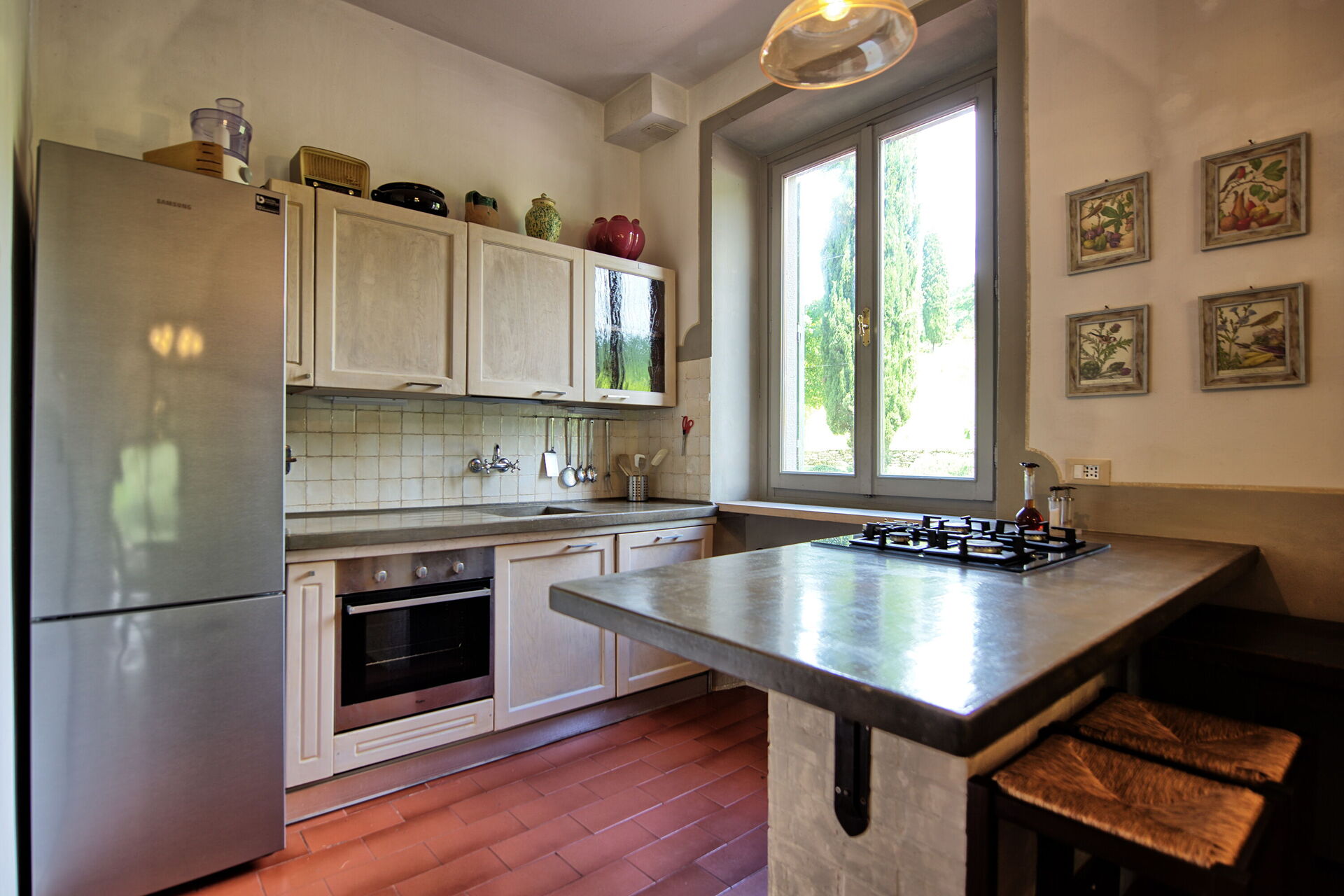 The property was beautiful and very clean. We stayed at the villa for 6 days and were very pleased. We had the pleasure of meeting the owner Alesandro and several occasions. Very nice and easy to work with. He makes his own wine at the villa but also is an artist making jewelry, wine pourers, napkins rings.... We also met his mother who is a pleasure. The villa is in a good location. Quiet but close enough to be able to get out and eat and see things without too much of a drive. I would highly recommend this villa.