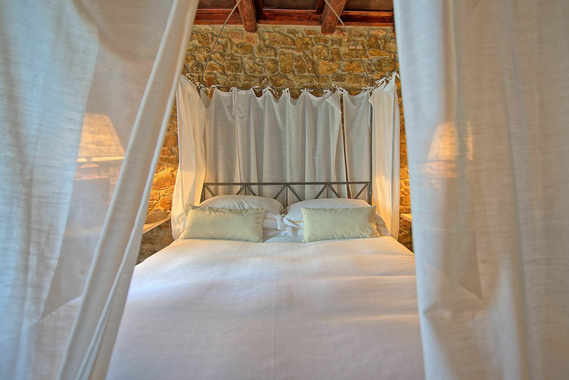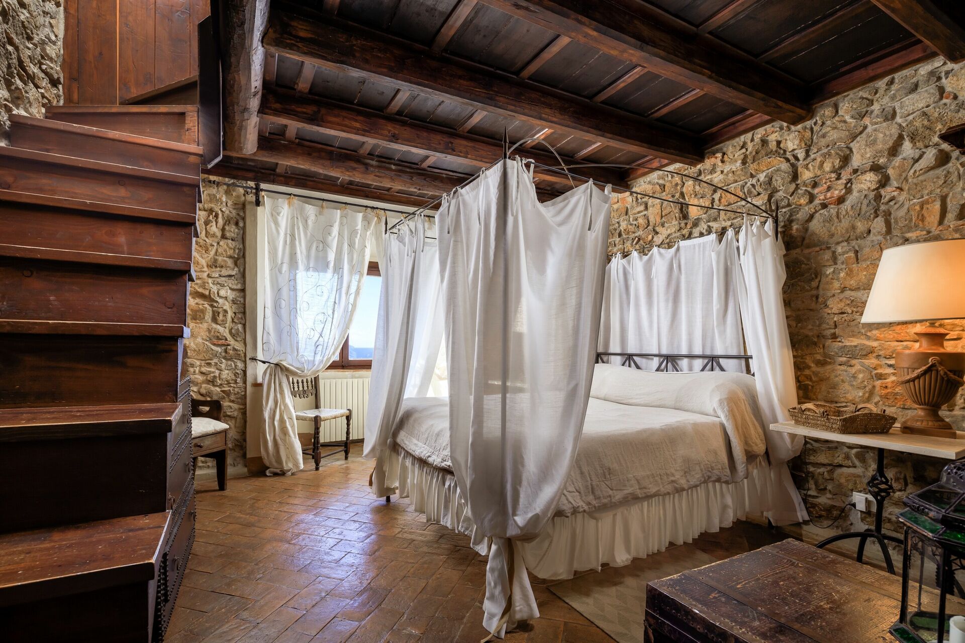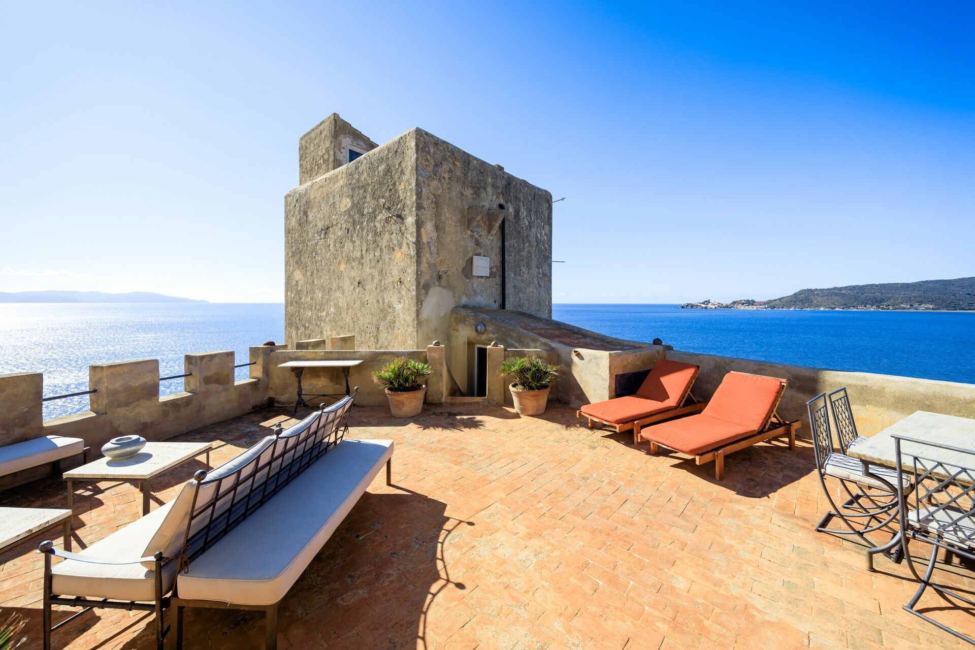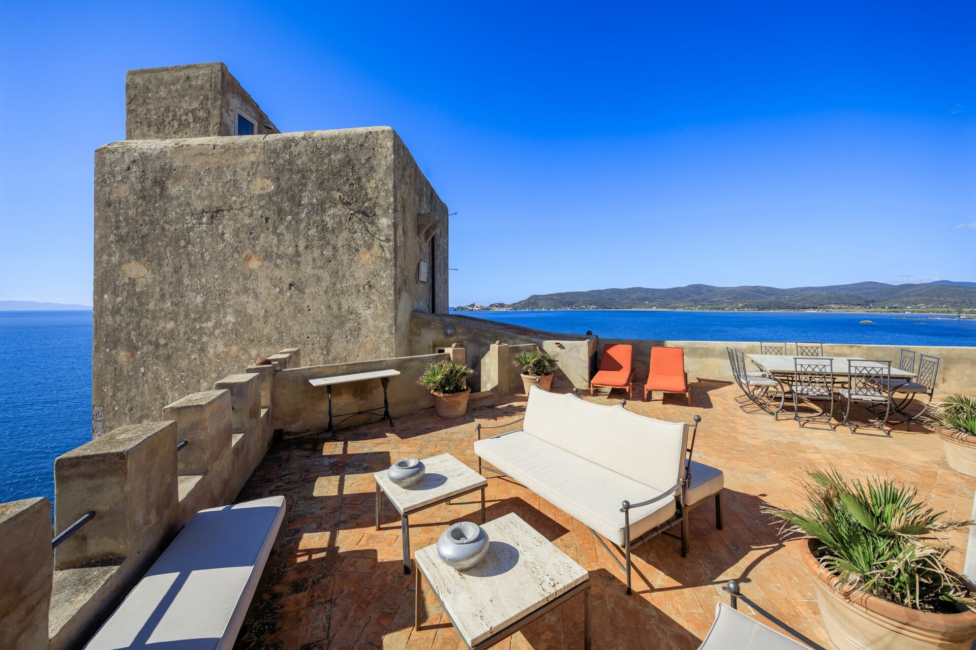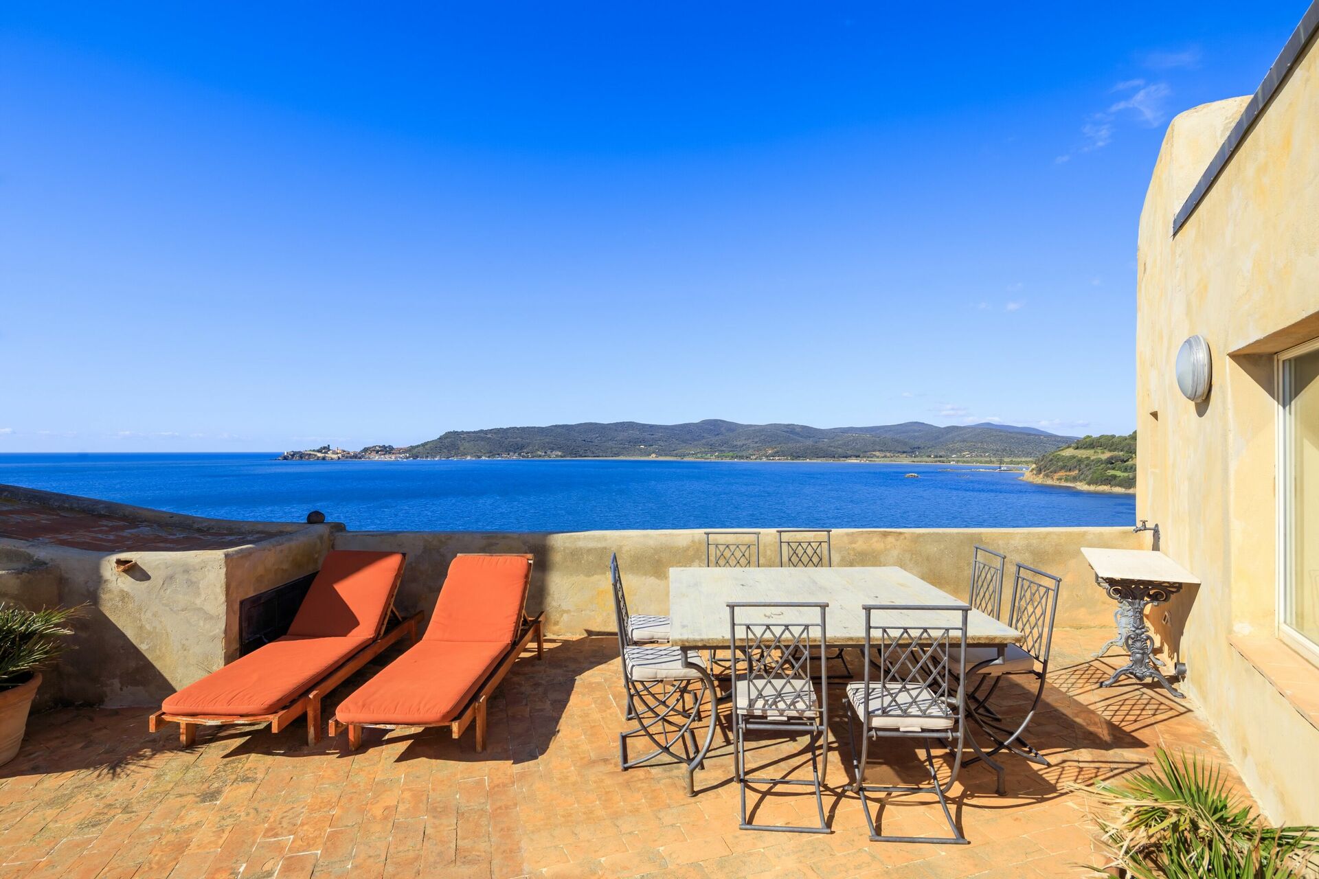 En av de mest charmerande slott i Toscana. Presidio är ett gammalt spansk torn som omsorgsfullt restaurerats med anor från 1500-talet och byggdes i försvar från invasionerna från saracenerna. Villan är snyggt beläget i Talamone söder i Toscana. Semeterhuset ligger bara några meter från havet och har direkt tillgång till en kustområdet (klippor). Fastigheten är i ett lugnt läge och erbjuder fantastisk utsikt över Argentario och Talamone kusten.