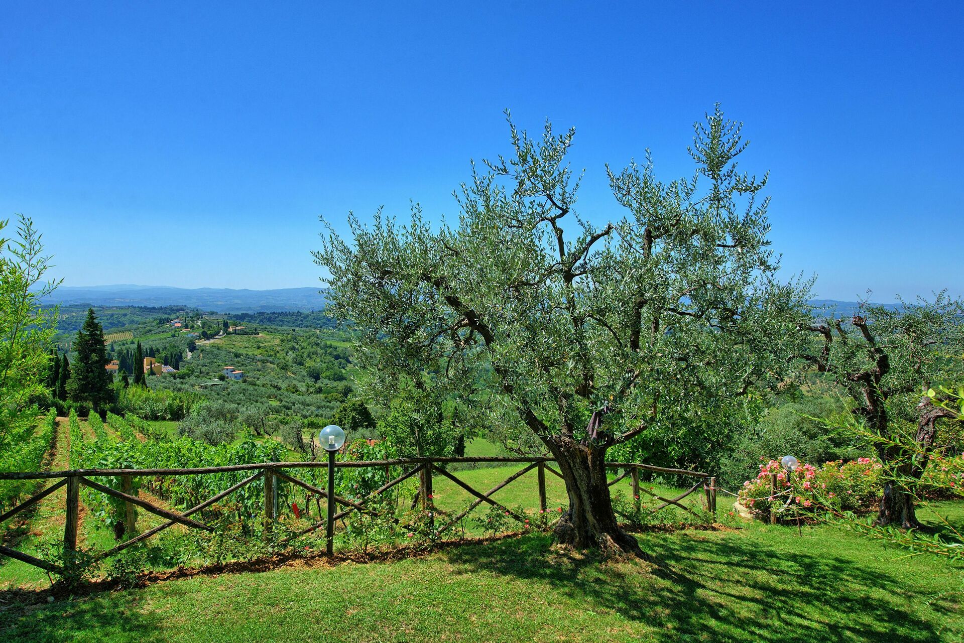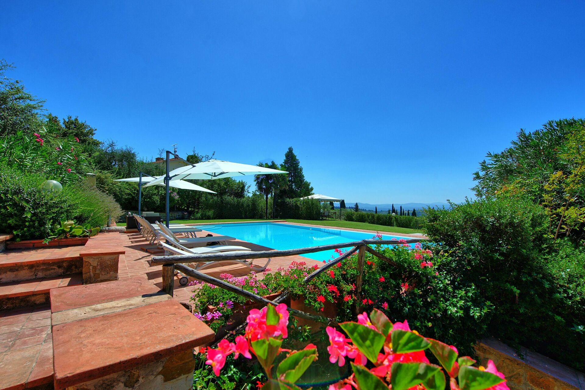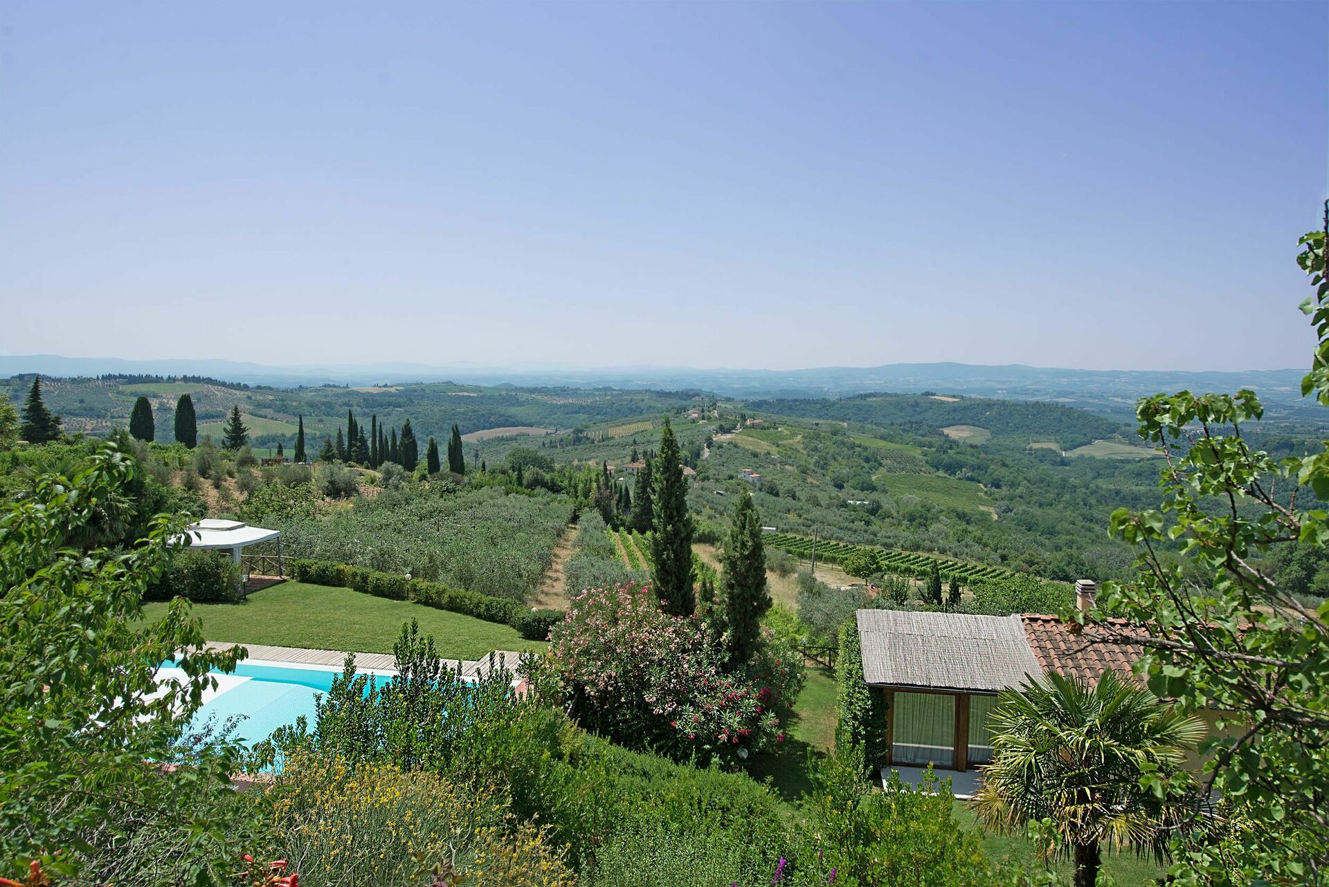 An excellent house: view 20km, swimming pool, kitchen, living room, very helpful administrators Stefano & Caterina, Chianti-environment, restaurants. Hard to leave after four weeks.