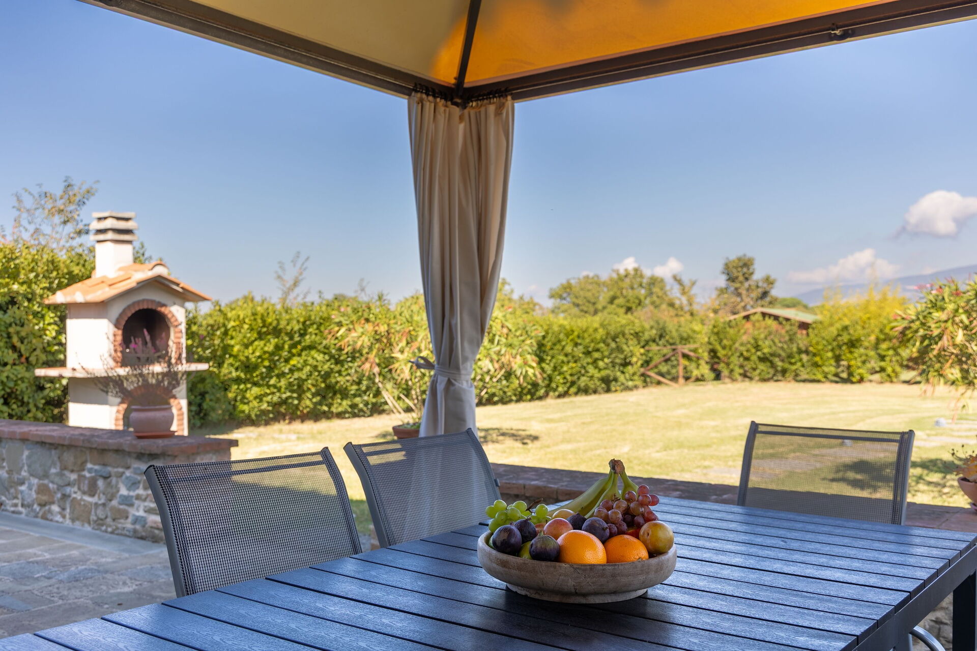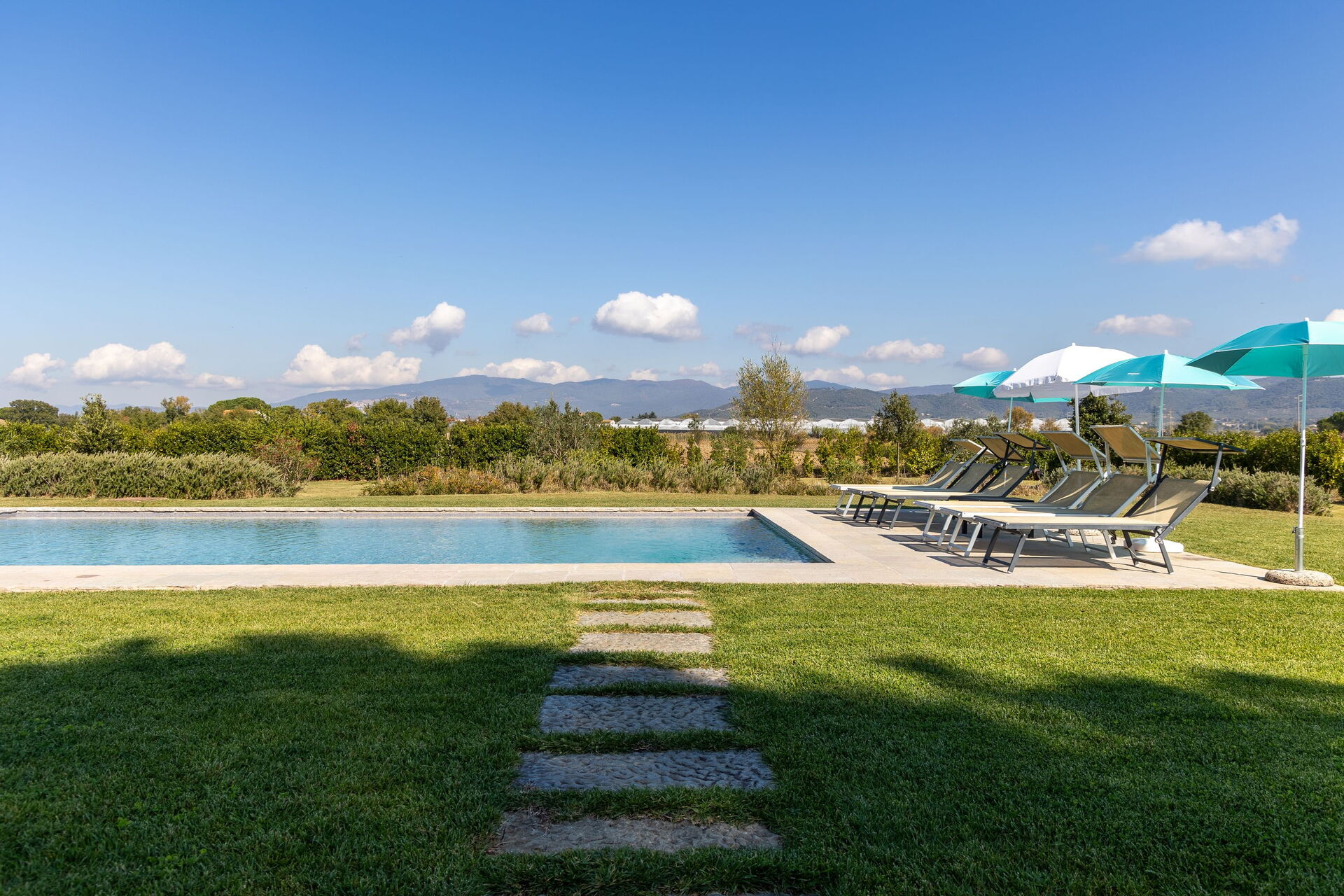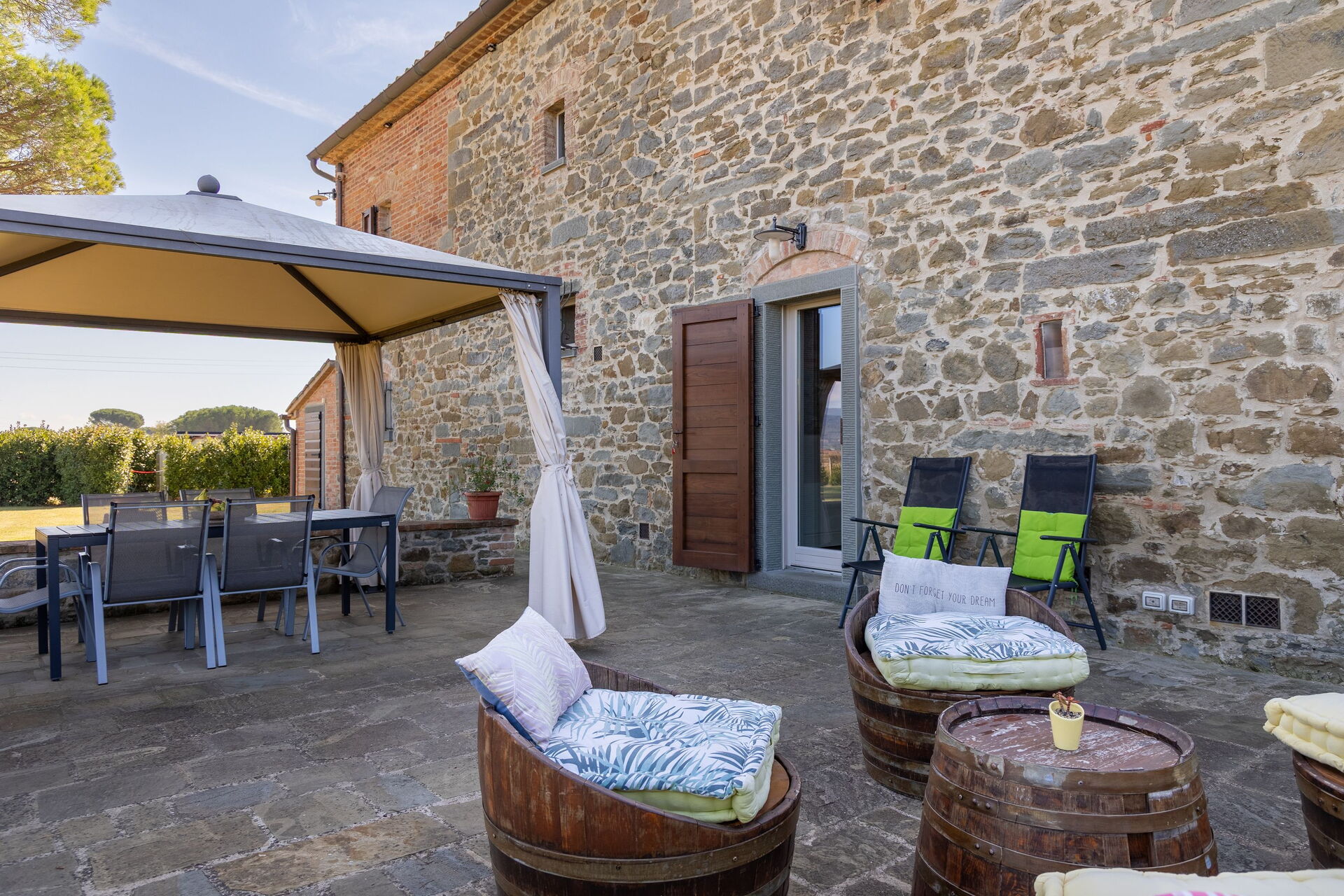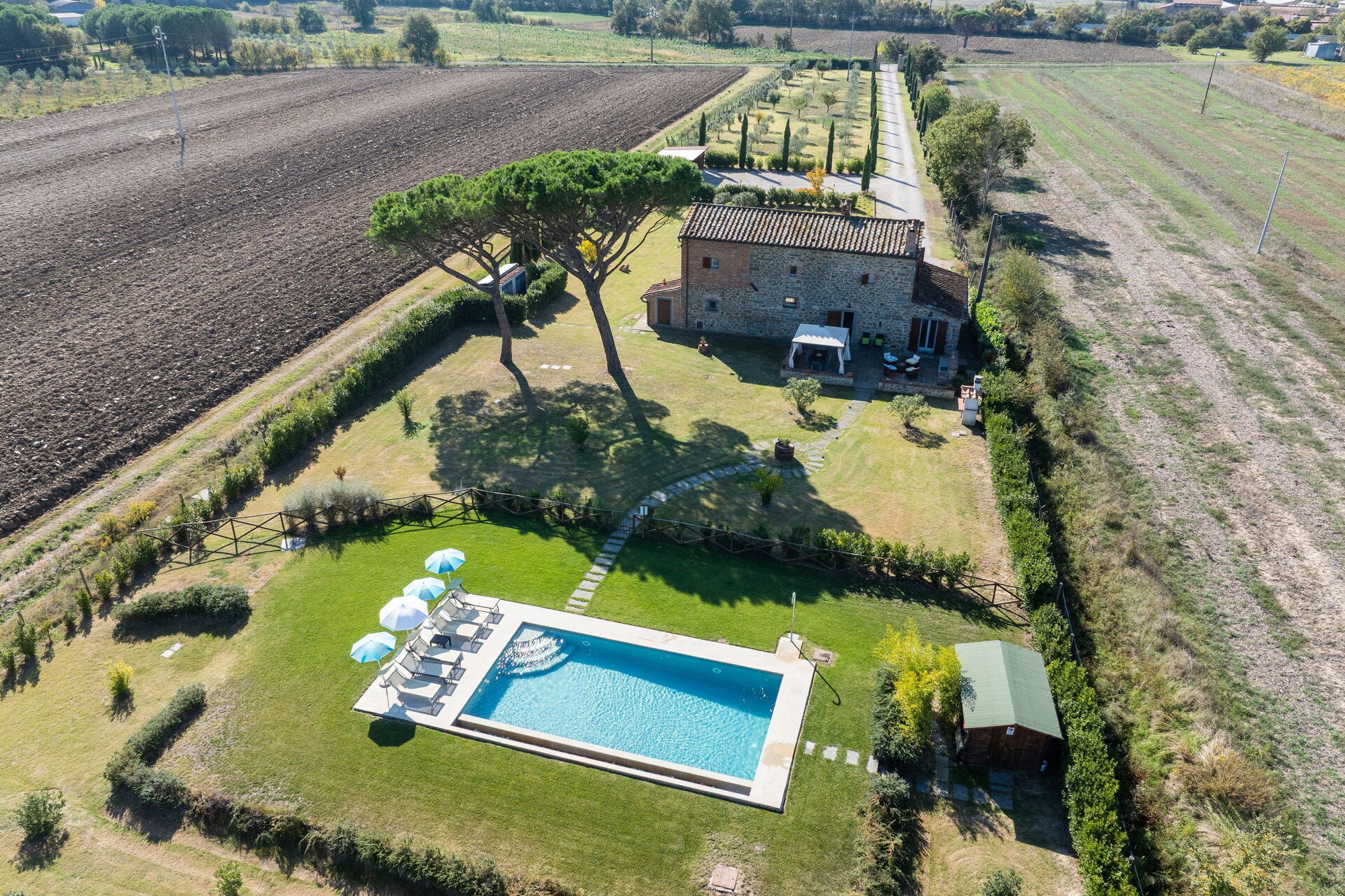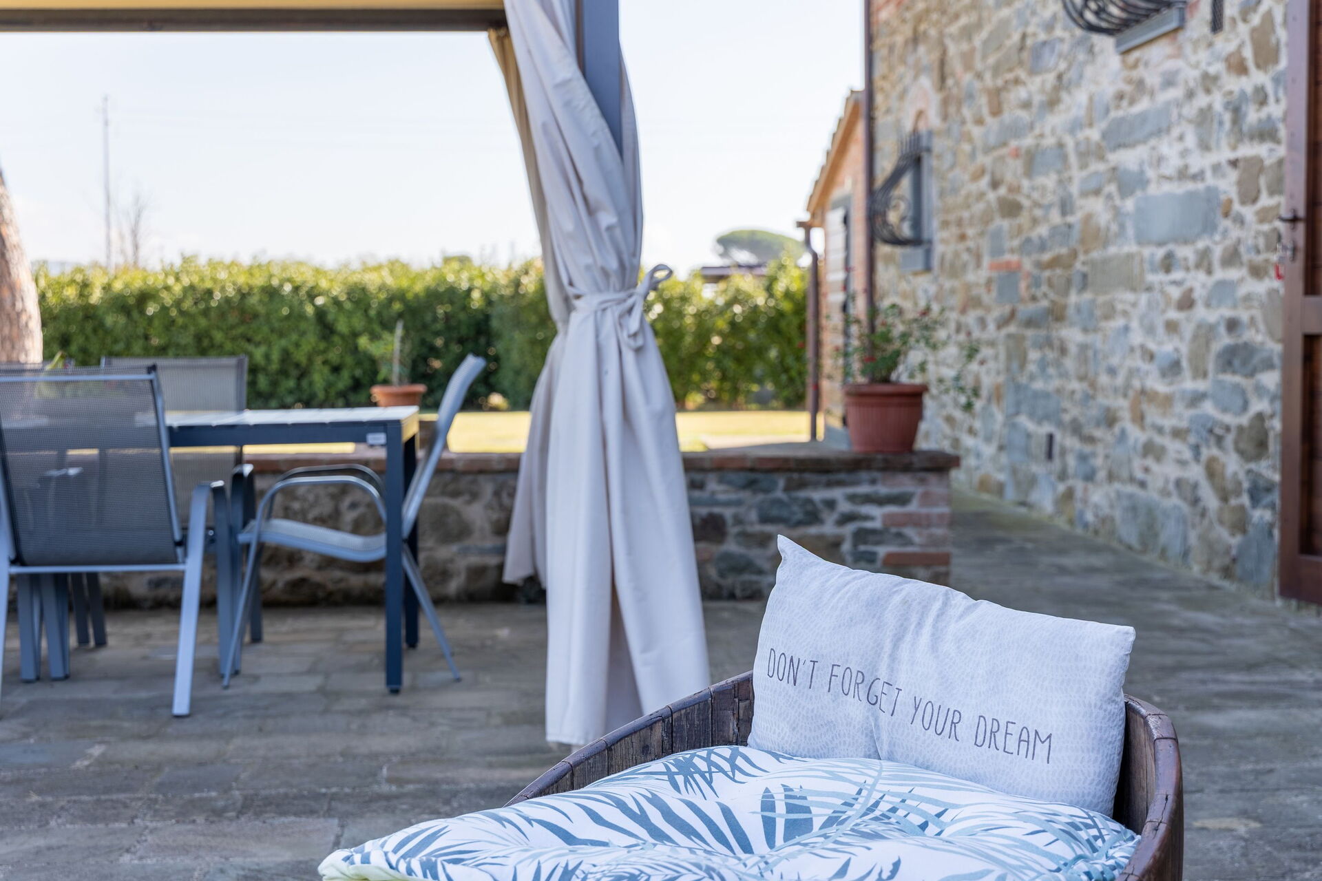 Villans stora möblerade uteplatser är perfekta för uteserveringar. Gästerna kan njuta av en stor ny pool med panoramautsikt över landsbygden och Cortona kan ses på avstånd. Utomhusområdet och rymden i huset är perfekt för en lugn och bekväm semester.