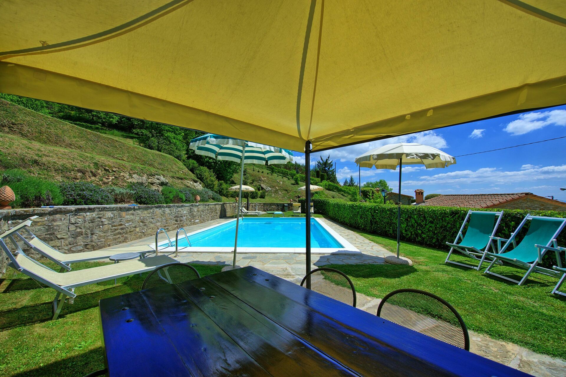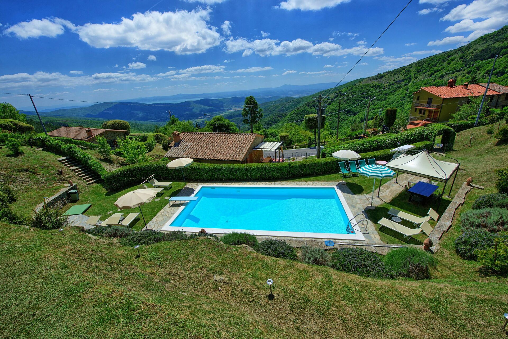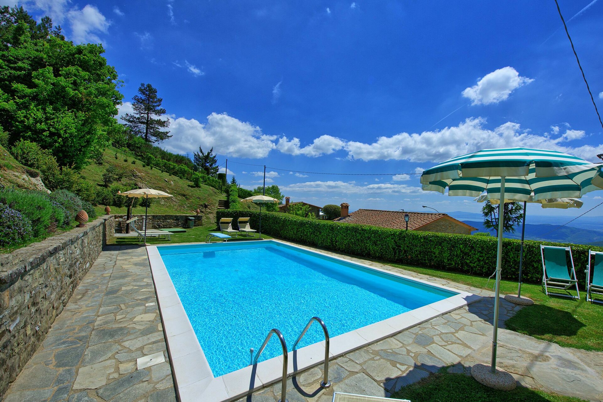 Härligt semesterhus med egen pool ca. 10 km bort från den medeltida staden Cortona i Toscana. Huset är omgiven av fantastisk natur och utsikten är enastående.