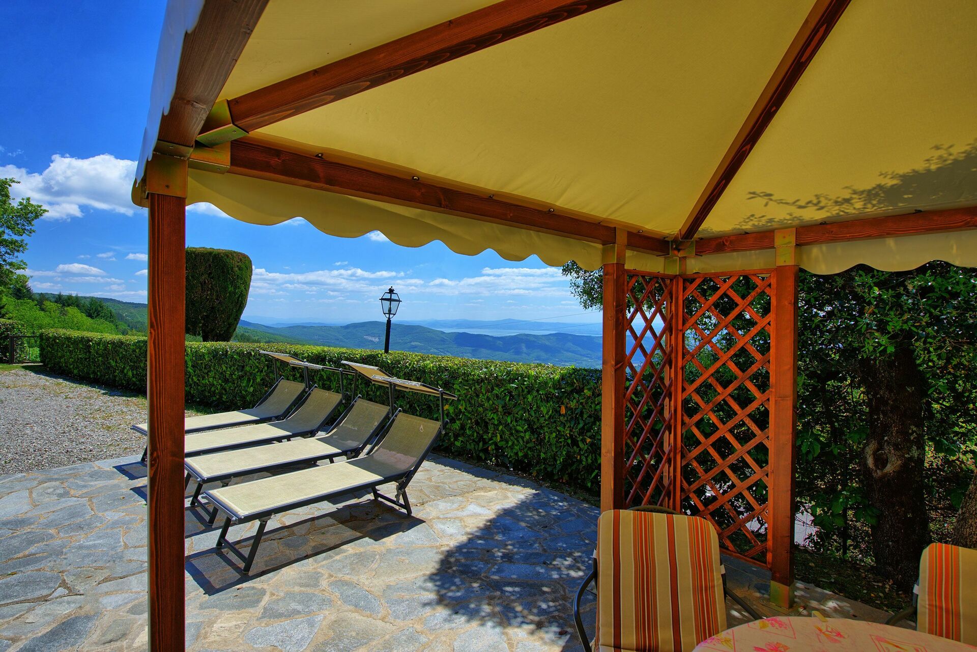 This property is excellent. It is situated with outstanding views of the valley towards Lago Trasimeno. The location is very peaceful with little passing traffic. The property and swimming pool is totally private. The building is very new and is very well equipped. It was spotlessly clean and very comfortable. Air conditioning is included in all rooms which is a bonus. The grounds and swimming pool are immaculately maintained. All outside equipment is of a high quality.