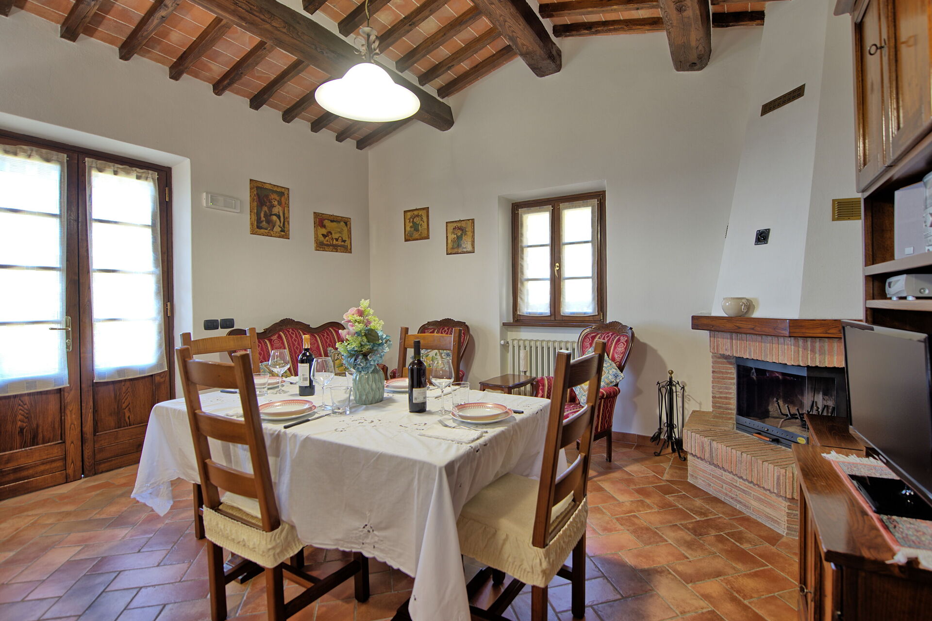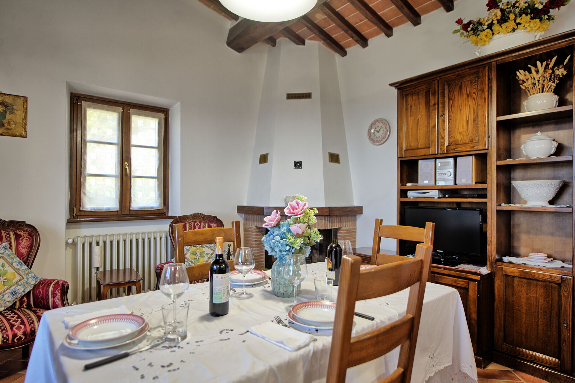 Huset är bekvämt inredda i rustik stil. Utanför finns en privat uteplats som är inredd för att ha utomhusmåltider. Nära huset passerar en liten väg från Cortona till de små byarna i området.