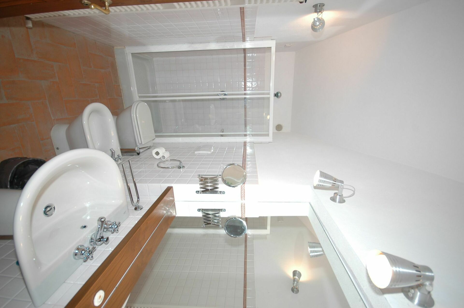 Första våningen : vardagsrum (satellit-TV) med öppen spis och matplats, litet kök (ugn, frys, diskmaskin), dubbelrum, tvåbäddsrum, badrum med dusch, badrum med badkar.