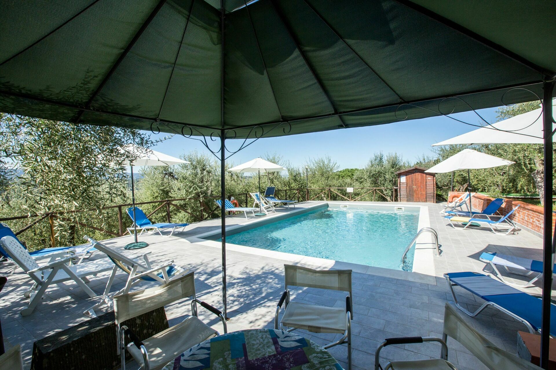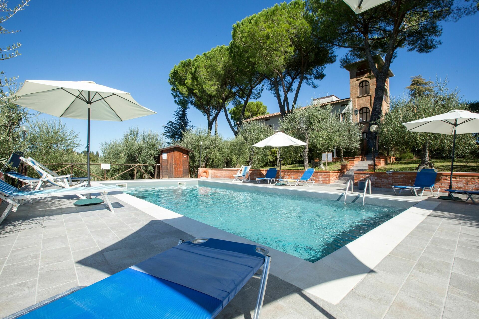 Stort semesterhus med privat pool att hyra nära Certaldo i Toscana. Huset ligger också på kort avstånd från den vackra historiska staden San Gimignano som är känd för sina många torn.