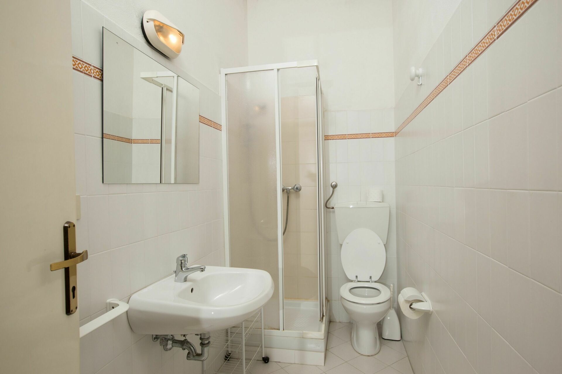 3 steg högre : dubbelrum, tvåbäddsrum, badrum med dusch.