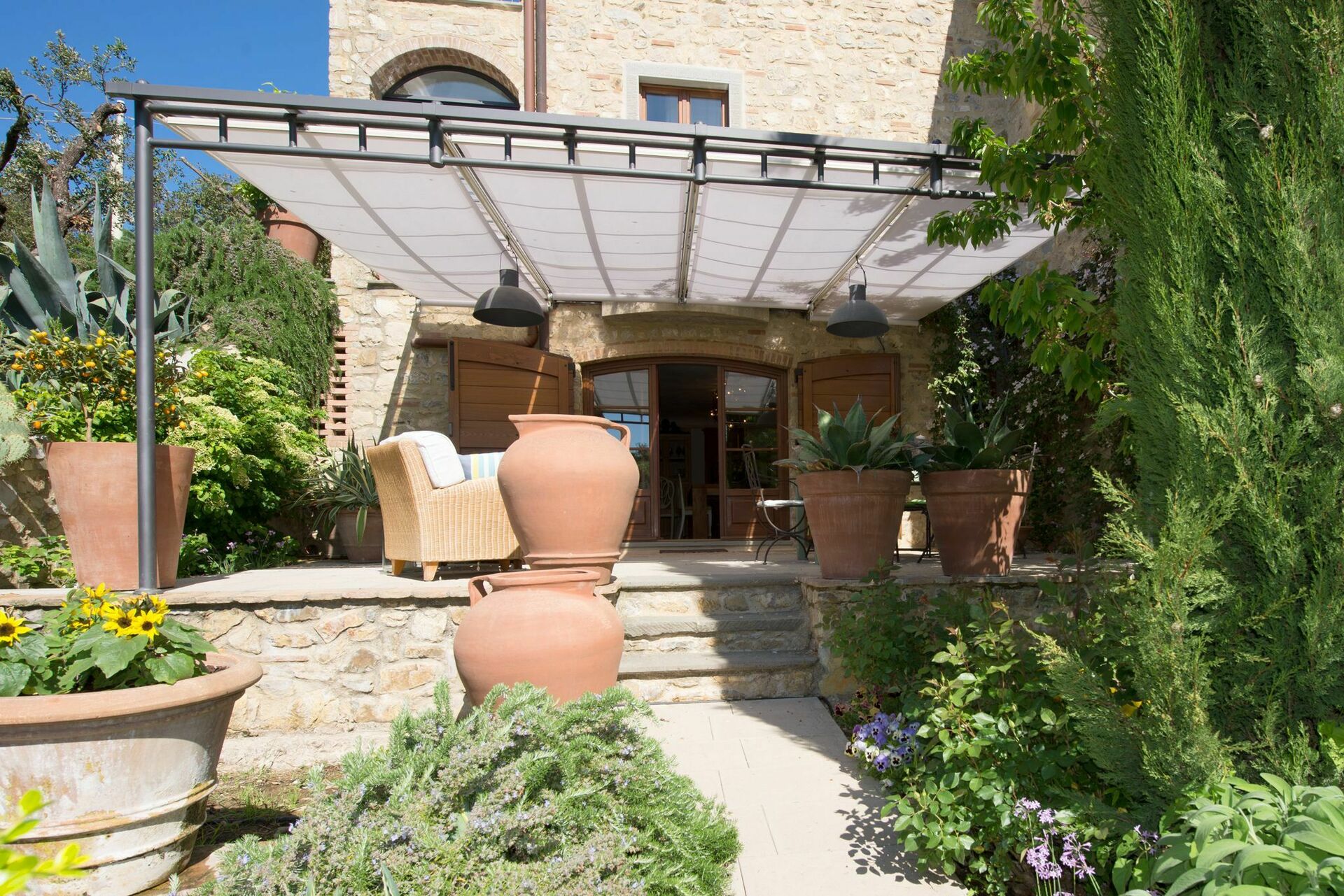 Really beautiful villa with lots of covered seating areas so you can stay cool away the heat of the Summer sun