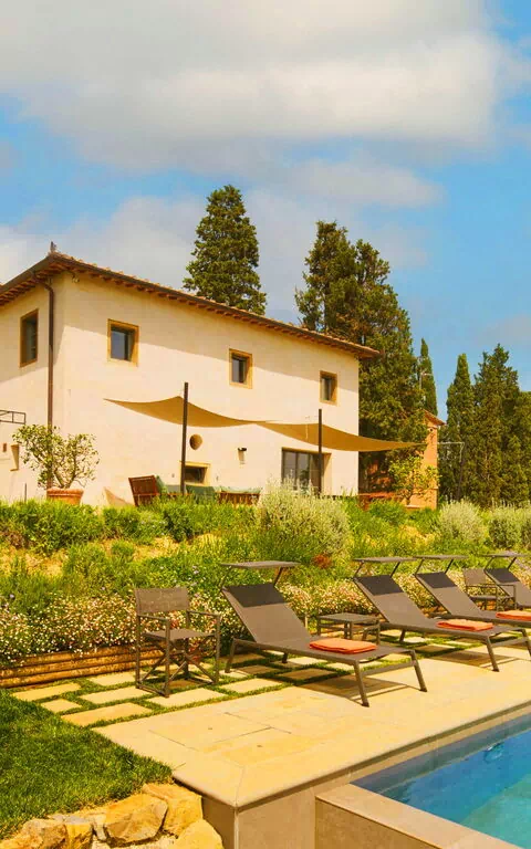 Denna fantastiska lyxvillan i Toscana har 6 sovrum, vart och ett med eget badrum, och rymmer upp till 12 personer.