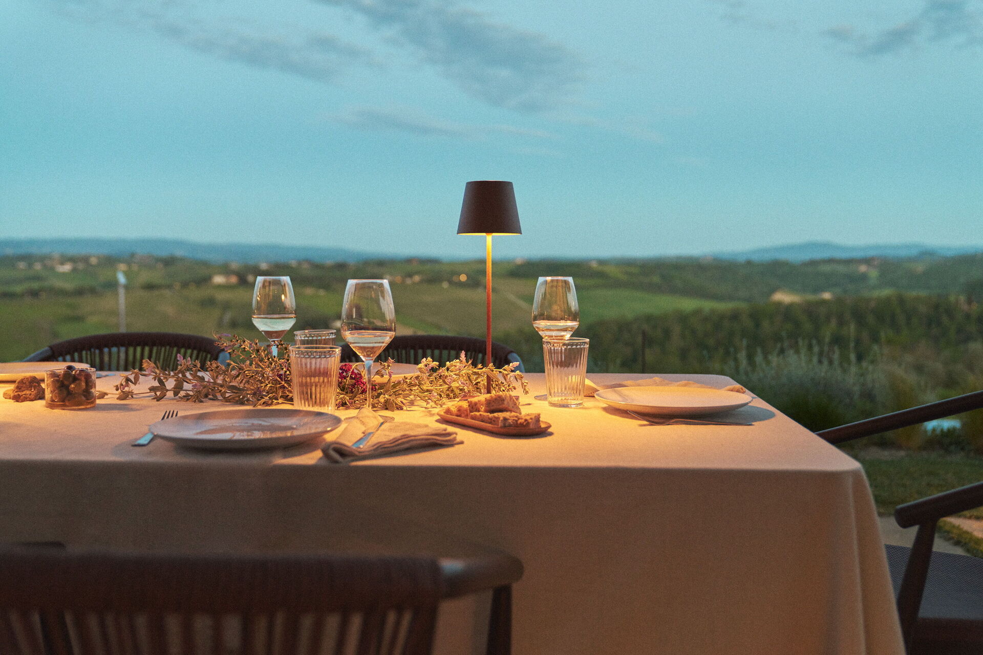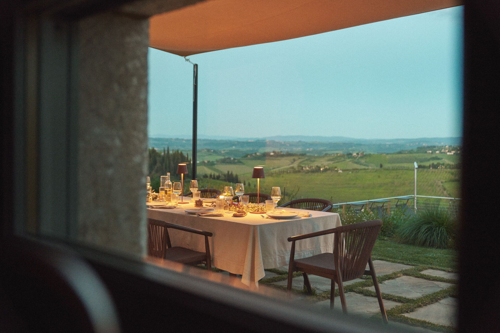 På tomten finns en stor, välskött trädgård och en utomhusmatplats där gästerna kan njuta av en förtrollande panoramautsikt över kullarna i Chianti och de berömda tornen i San Gimignano.