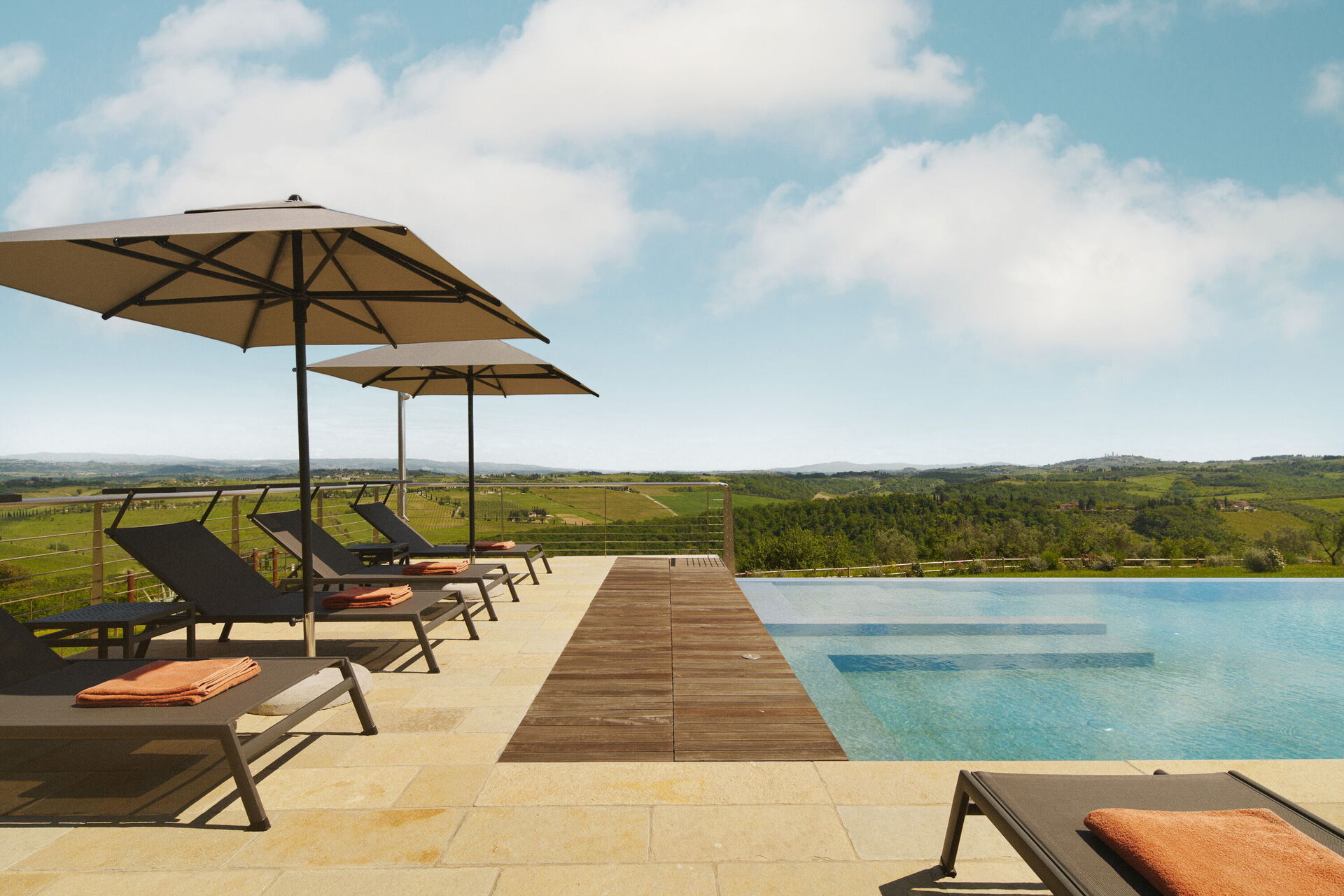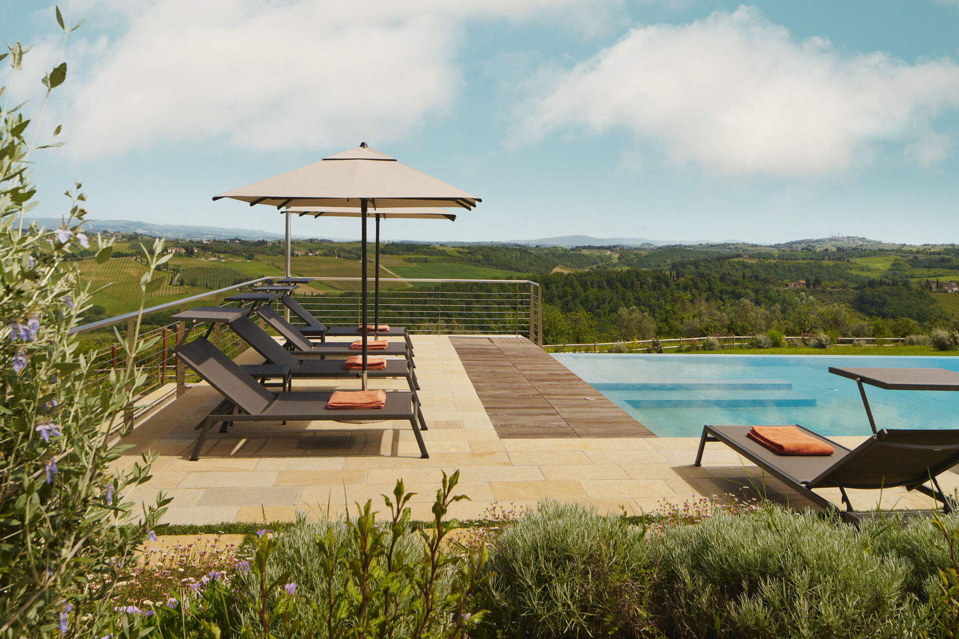 Villa Elmi är en lyxvilla i ett fridfullt, naturskönt läge på de toskanska kullarna nära San Gimignano.