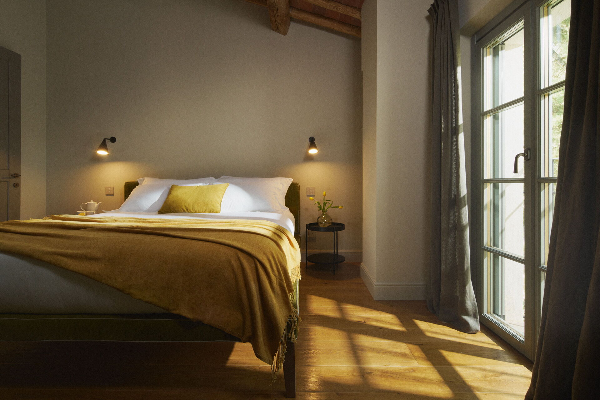 Första våningen: 4 dubbelrum (luftkonditionering), alla med eget badrum med dusch; 1 dubbelrum (luftkonditionering) med eget badrum med dusch och badkar.