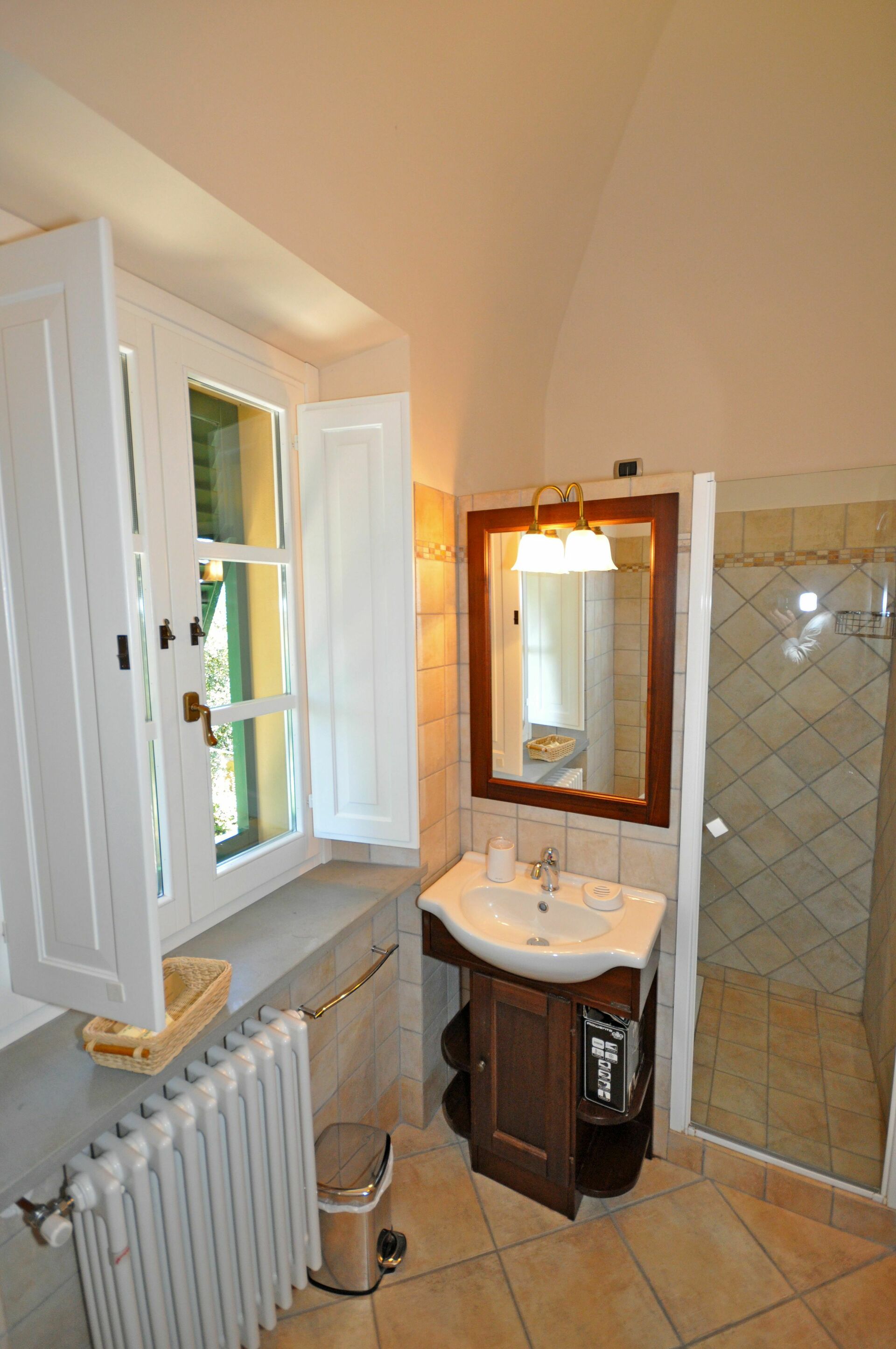 The property is in a beautiful but quiet location surrounded by vineyards and spectacular Tuscan scenery. The apartment was spacious and generally cool inside despite the high temperatures outside. The pool area is superb with extensive paving and plenty of sun-loungers