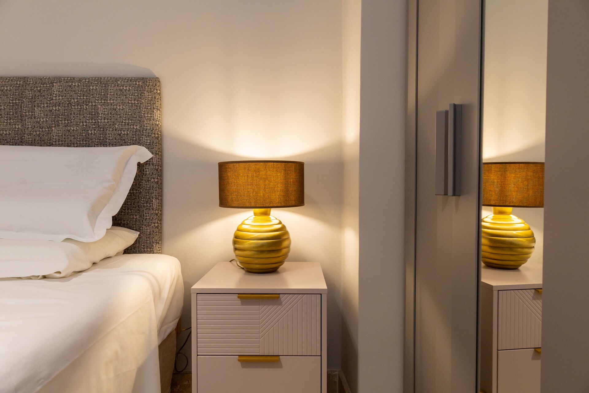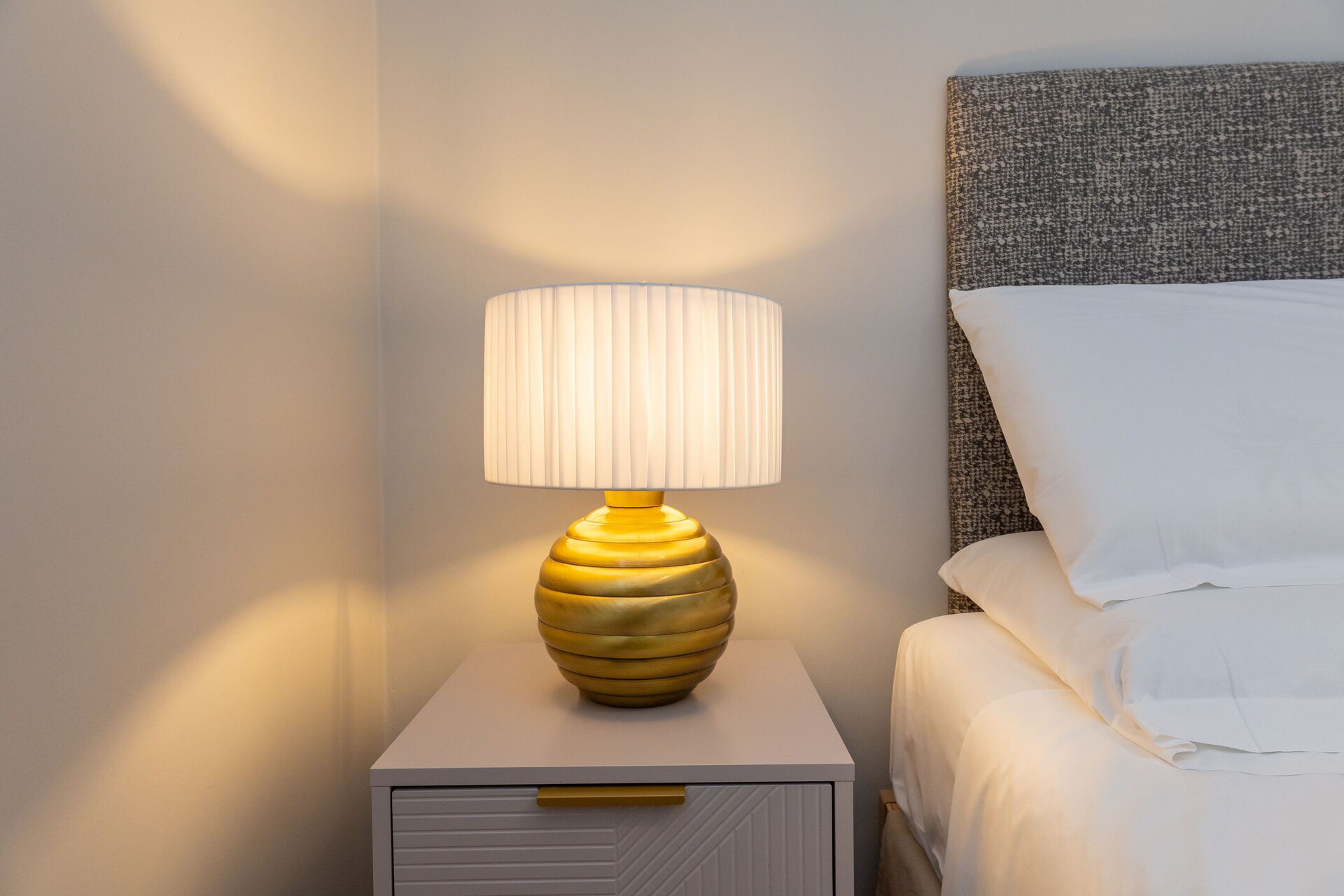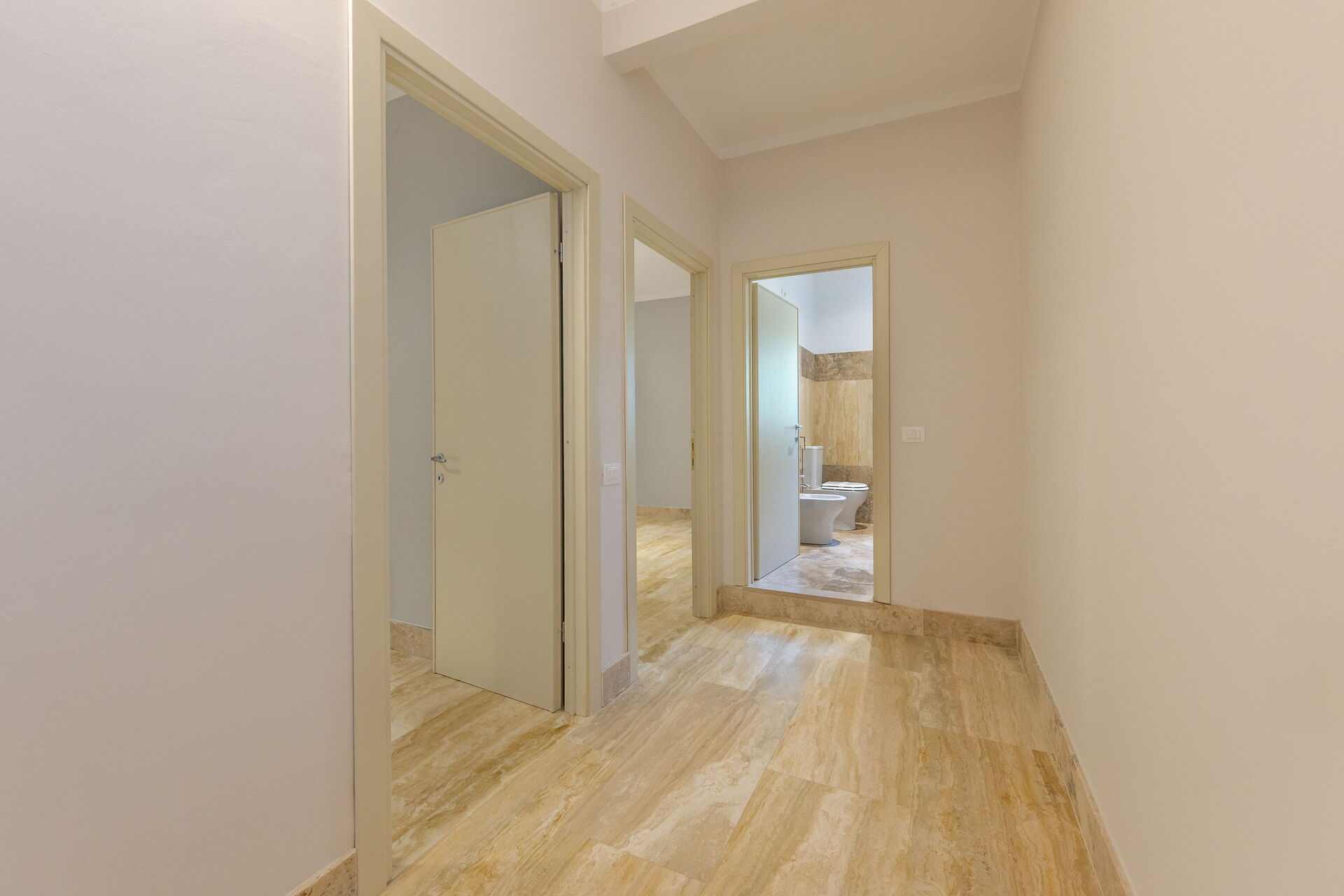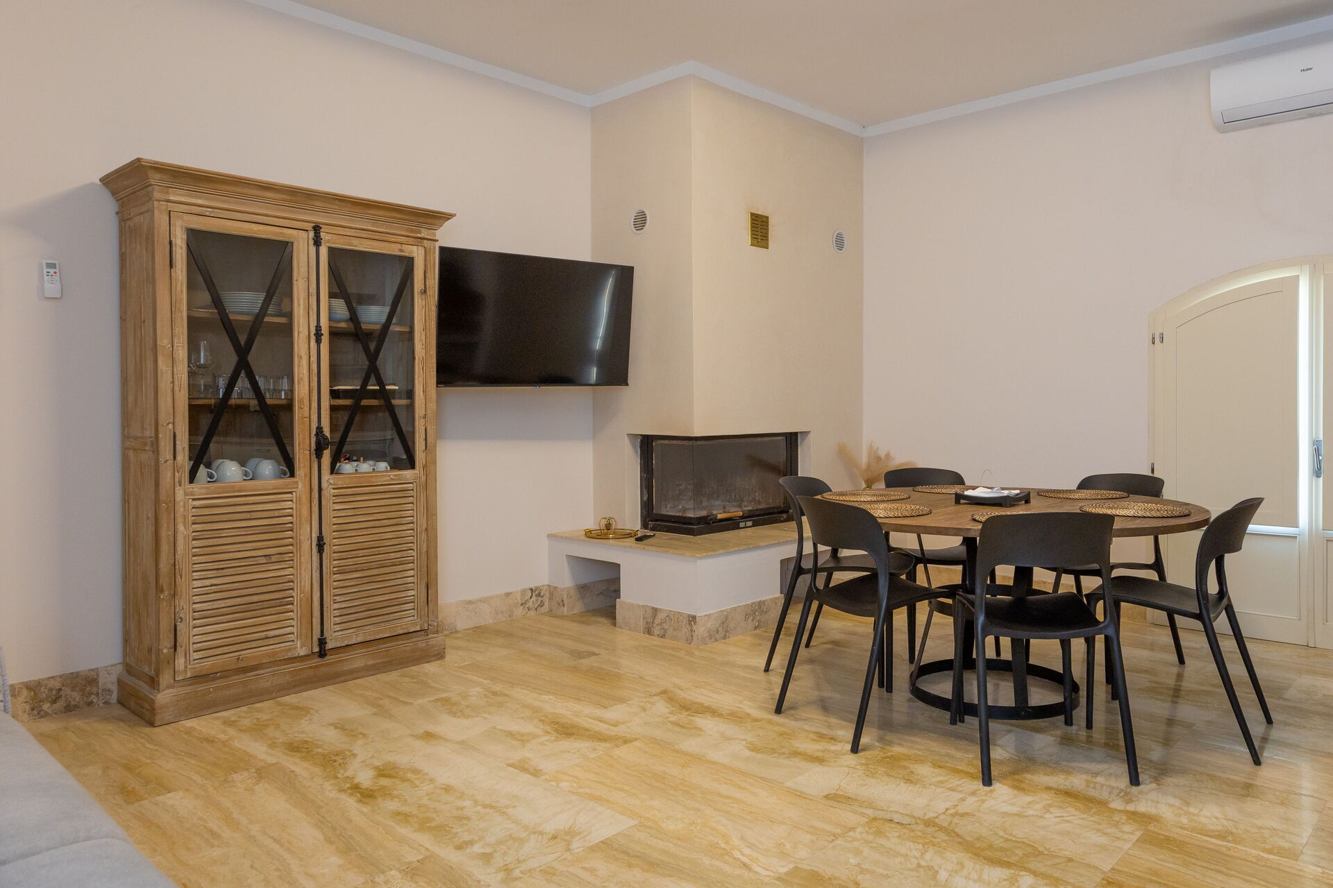 Första våningen: vardagsrum (smart-TV, luftkonditionering) med bäddsoffa för två, matplats och pentry (diskmaskin, ugn, kylskåp, espressobryggare, brödrost), 2 dubbelrum (varje med luftkonditionering), badrum med dusch.