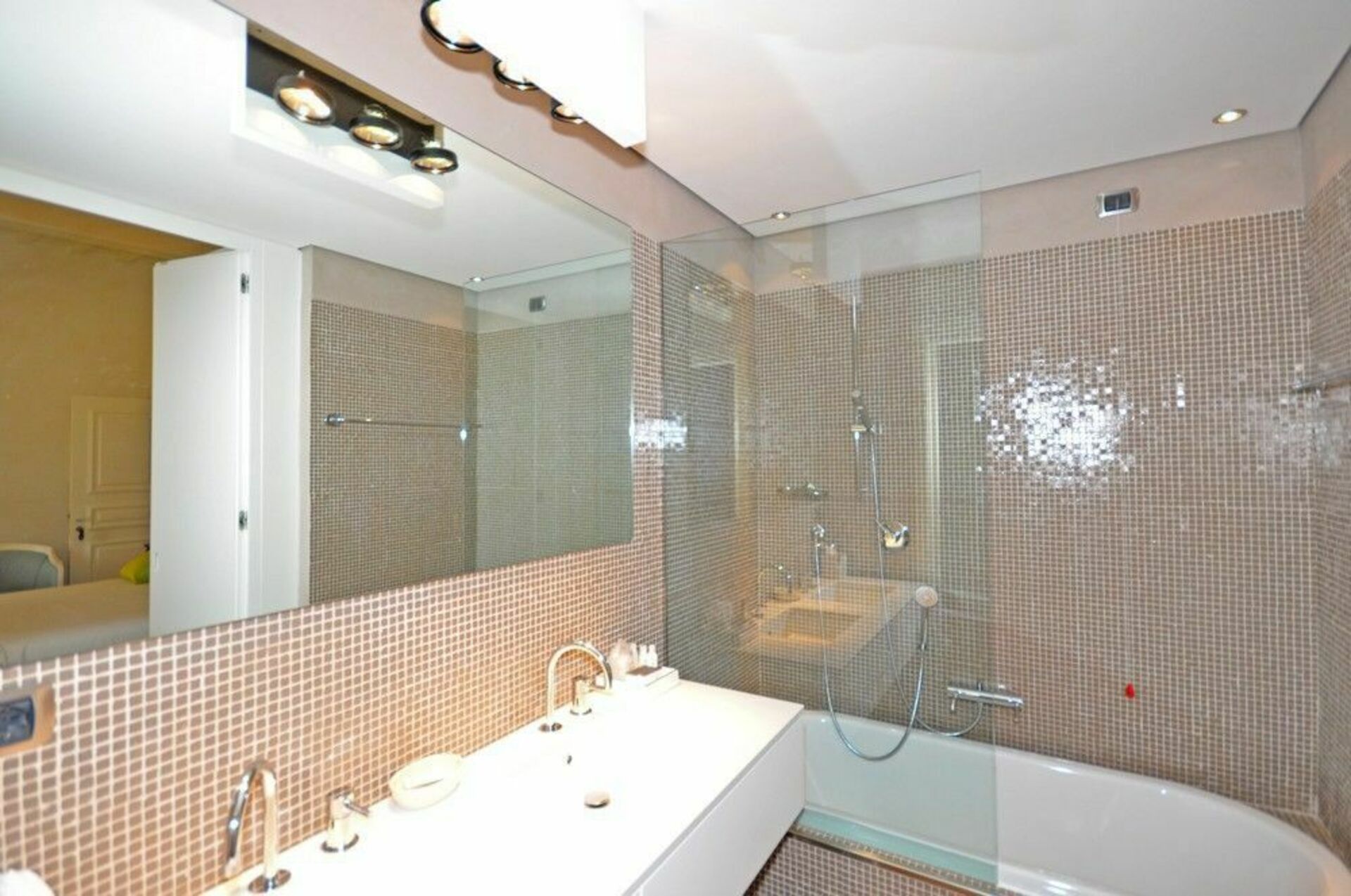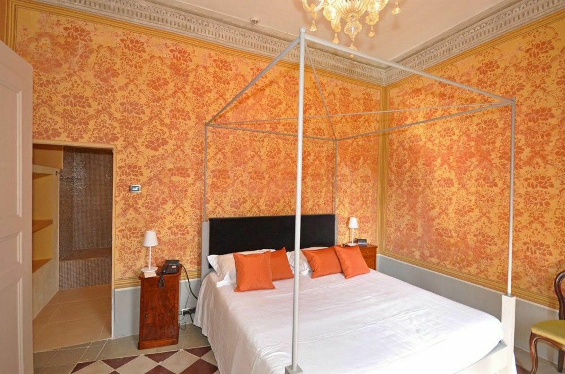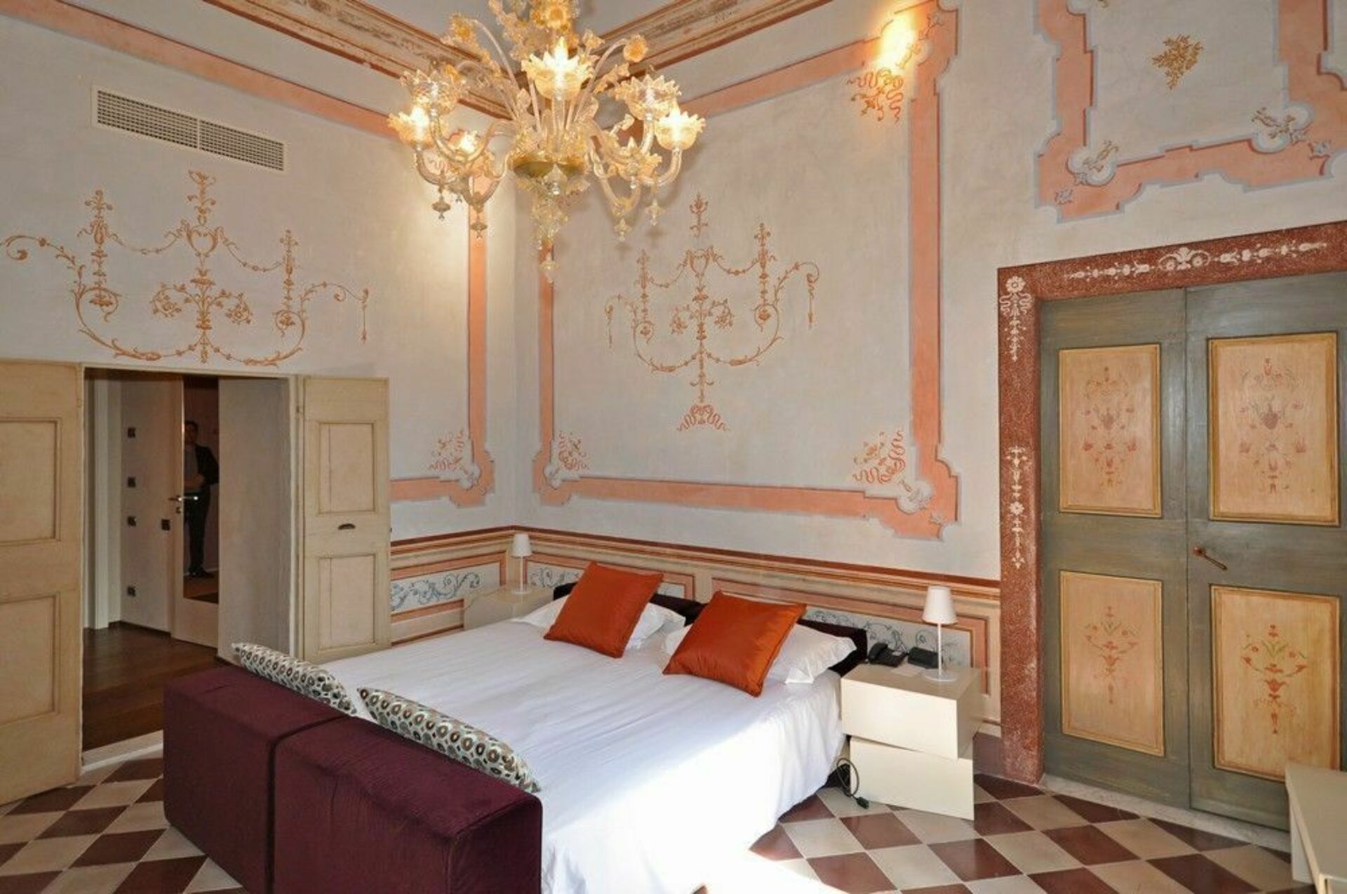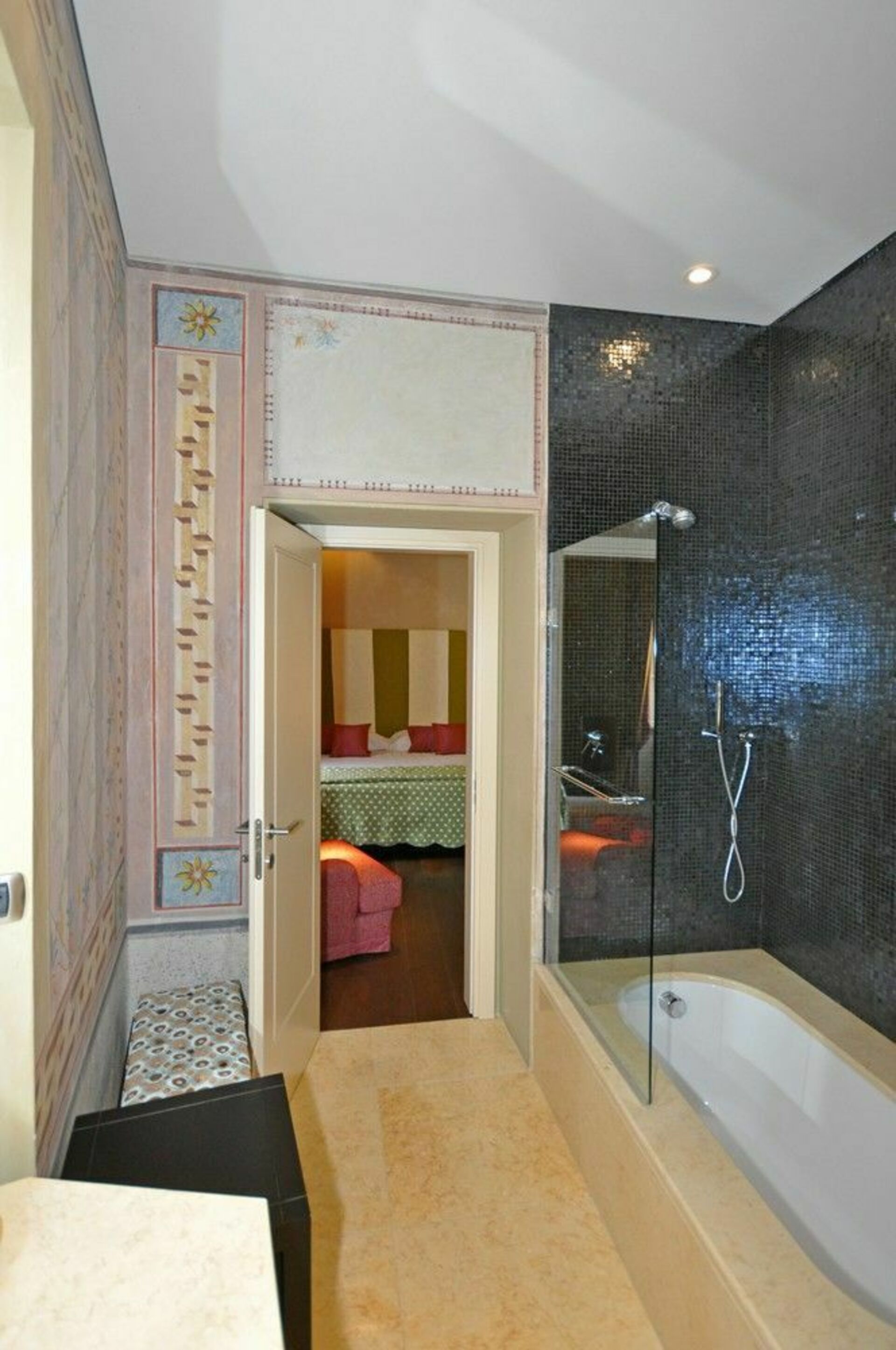 Första våningen (kan även nås via en hiss): svit med vardagsrum och sovrum med dubbelsäng med eget badrum med badkar / dusch, sovrum med badrum med badkar / dusch, sovrum med badrum med badkar / dusch, sovrum med badrum dubbel dubbel dubbel badrum med dusch, sovrum med badrum med badkar med dubbelsäng, sovrum med badrum med dusch, sovrum med badrum med badkar och dusch, sovrum med badrum med dusch, pentry med 2 elektriska kokplattor, kyl och frys dubbel dubbel dubbel, tillgång till en terrass, sovrum med fransk säng (även lämplig för 2 vuxna) med eget badrum med badkar / dusch (detta rum kan kopplas till den närliggande dubbelrum).