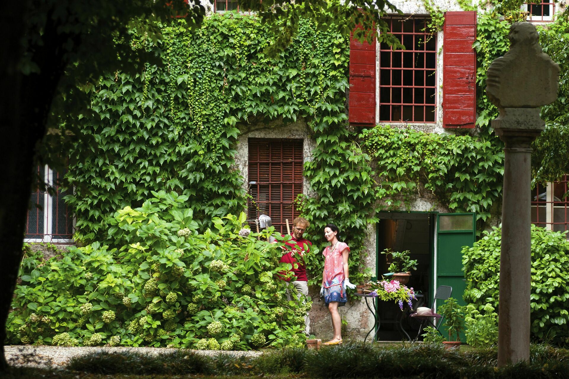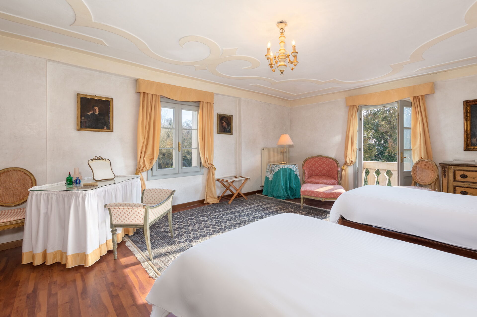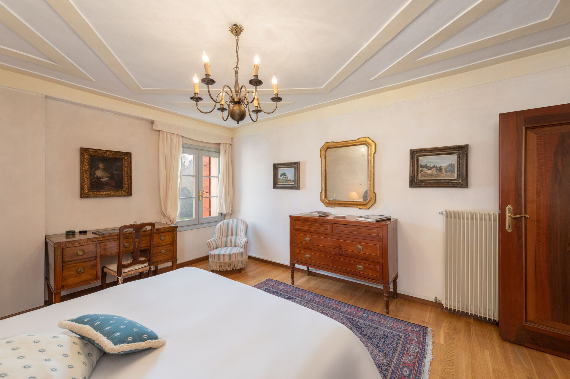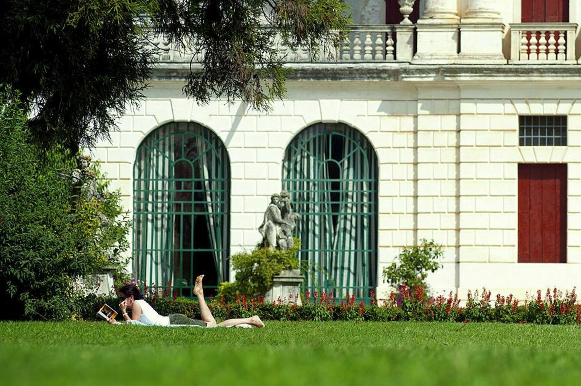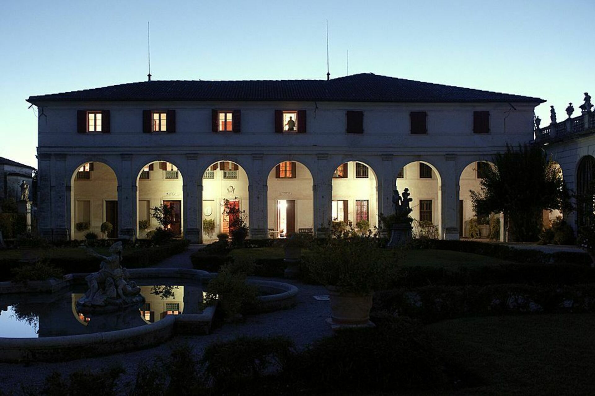 Alla fönster på övervåningen har utsikt över större delen av den italienska trädgården och villan fasad.