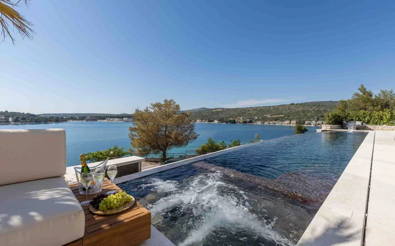 Denna lyxvillan ligger i ett exklusivt och lugnt bostadsområde med ett unikt läge endast 30 meter från havet, med direkt tillgång till stranden där du kan njuta av oförglömliga simturer i det kristallklara vattnet som Kroatiens kust har att erbjuda.