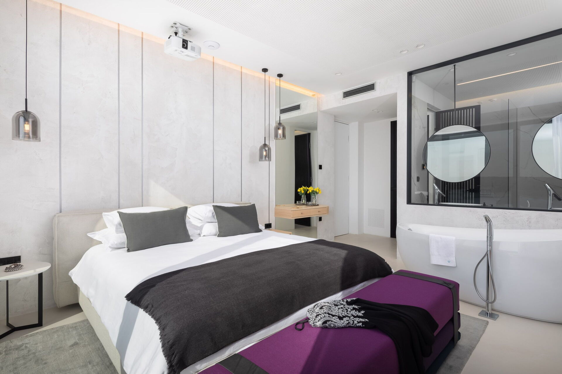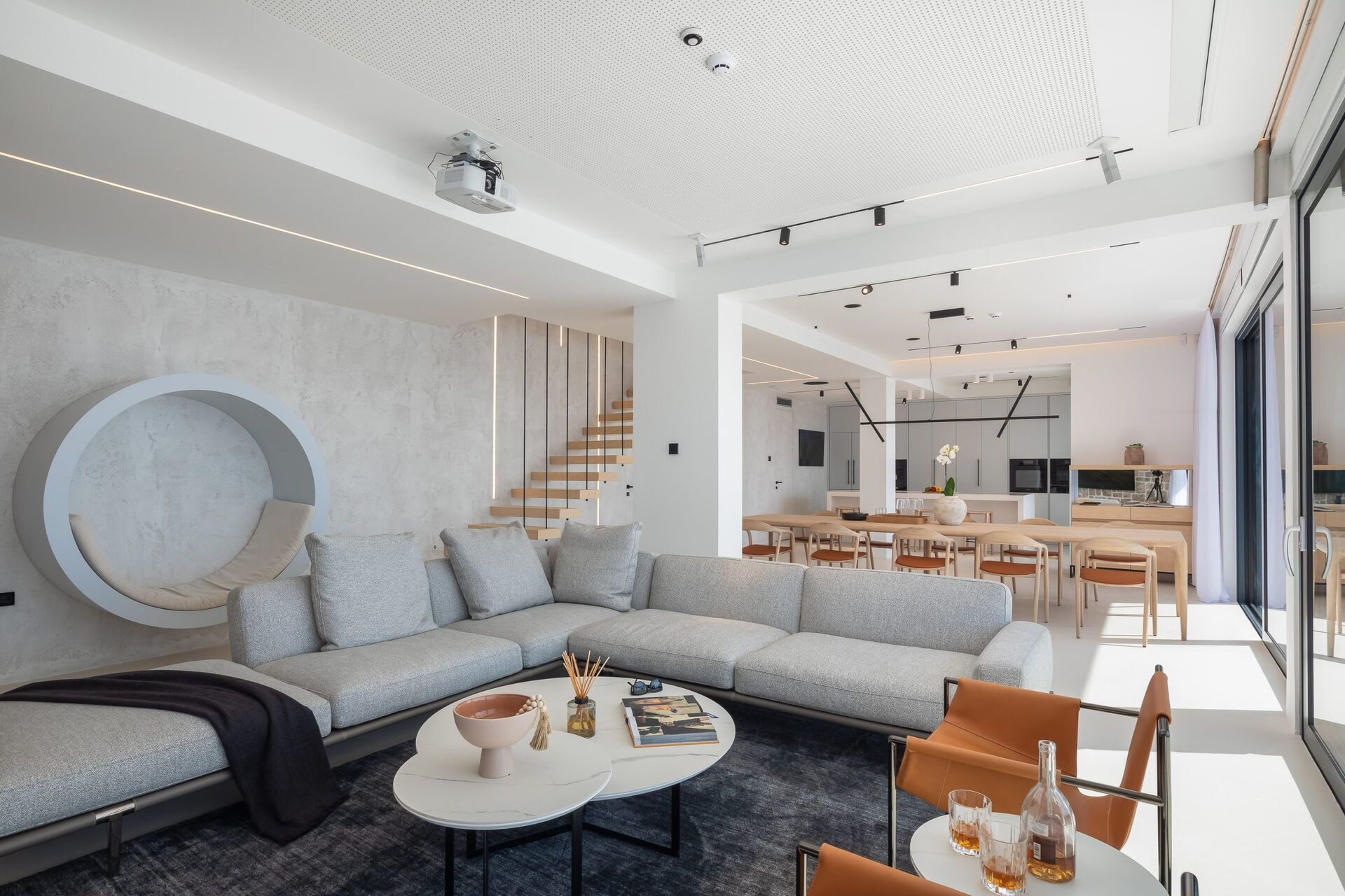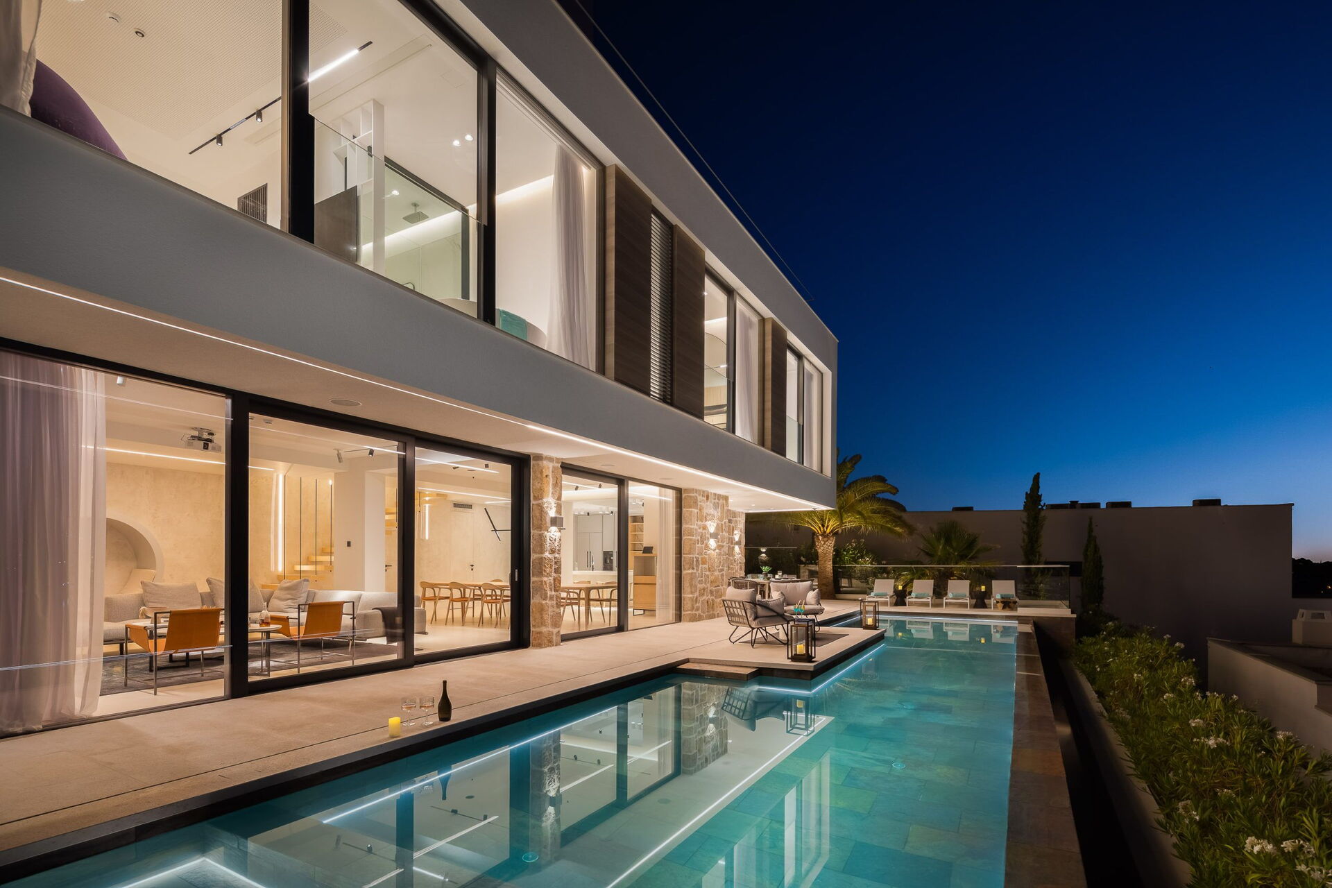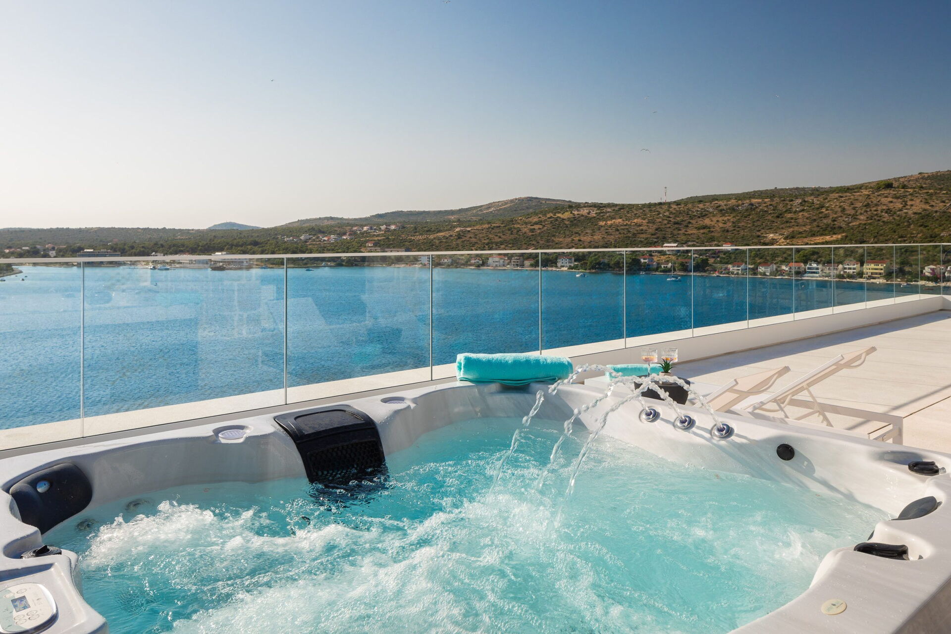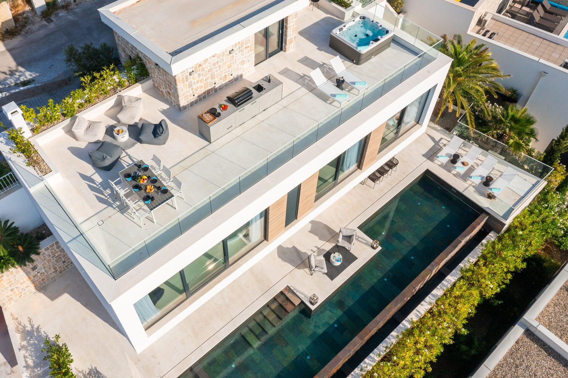 Huset är på två våningar, har fantastisk utsikt och är utrustat med alla moderna bekvämligheter. Med sina 3 sovrum och en ljus, elegant interiör kan semesterhuset bekvämt rymma upp till 6/8 personer. På fastigheten finns många utomhusgemensamma områden med naturskön utsikt där gästerna kan tillbringa tid tillsammans med familj eller vänner. Koppla av och njut av en måltid på takterrassen, som har ett utekök, grill och bubbelpool. Njut av Kroatiens sol vid den uppvärmda infinitypoolen med havsutsikt.
