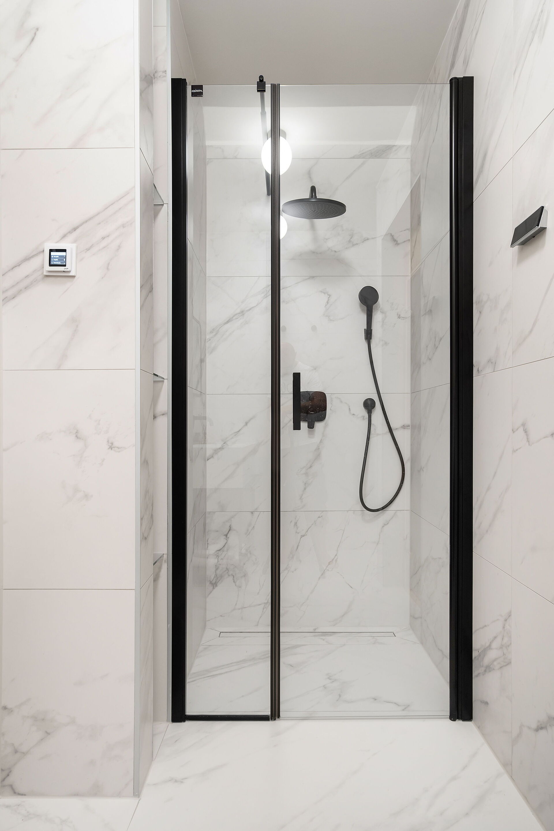 Ingång till vardagsrum, kök och matsal, 2 dubbelrum med eget badrum med dusch, 1 rum med enkelsäng.