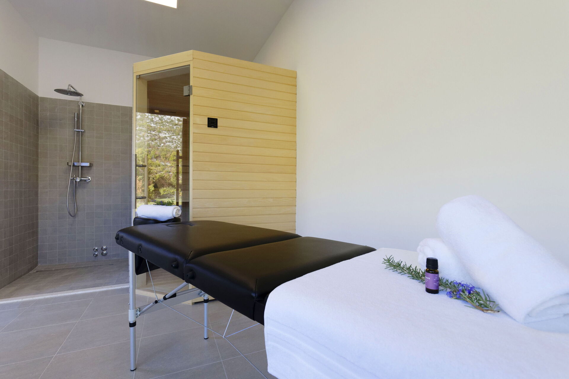 Här finns plats för 8 personer i 4 rymliga sovrum med egna badrum, stora gemensamma utrymmen samt ett välmåendeområde.