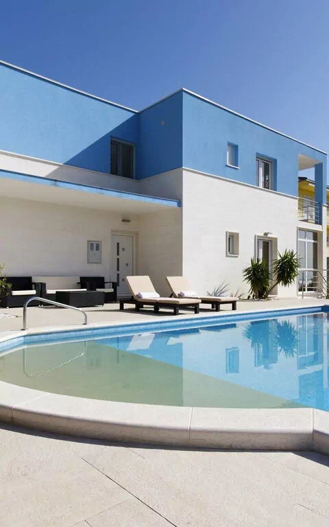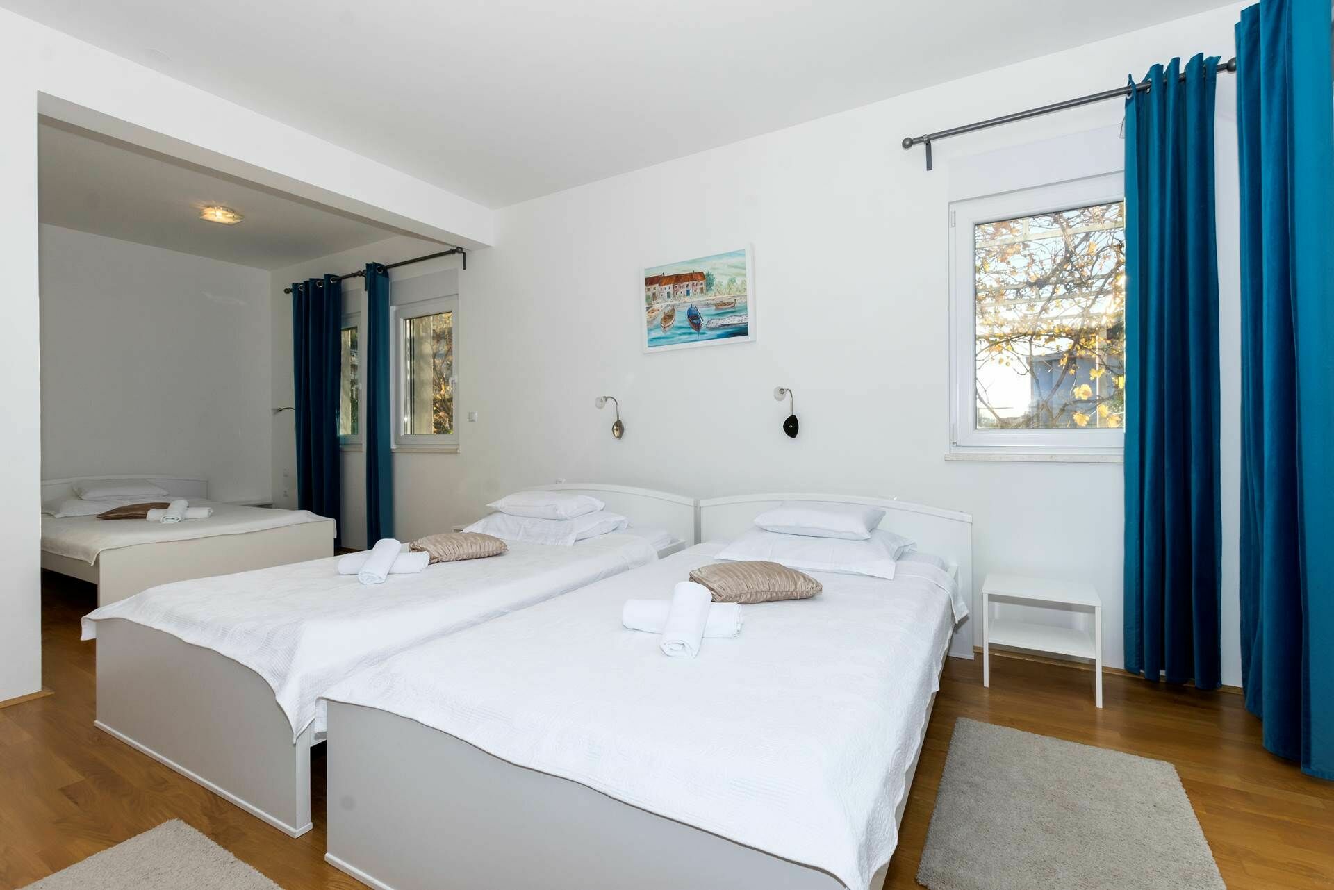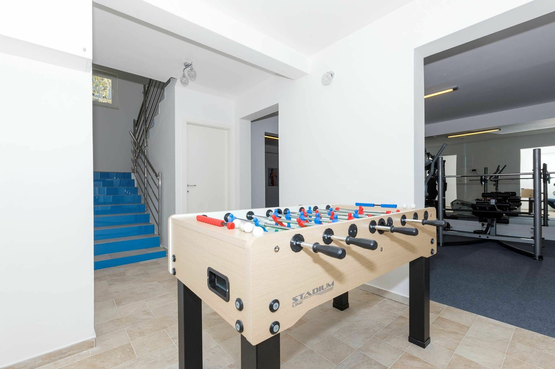 Om du vill ha ett exklusivt fritidshus för en drömsemester i Kroatien är Villa Mermaid ett utmärkt val! Huset har 4 sovrum och många stora gemensamma utrymmen och rymmer lätt 9 personer. Villan är fördelad på två huvudvåningar, liksom en lägre nivå, är elegant och smakfullt inredd och erbjuder moderna faciliteter som luftkonditionering, Wi-Fi, två kök och vardagsrum fullt utrustade med nya hushållsapparater. Det finns också ett gym, en lekplats med bordtennis och ett biljardbord inomhus.