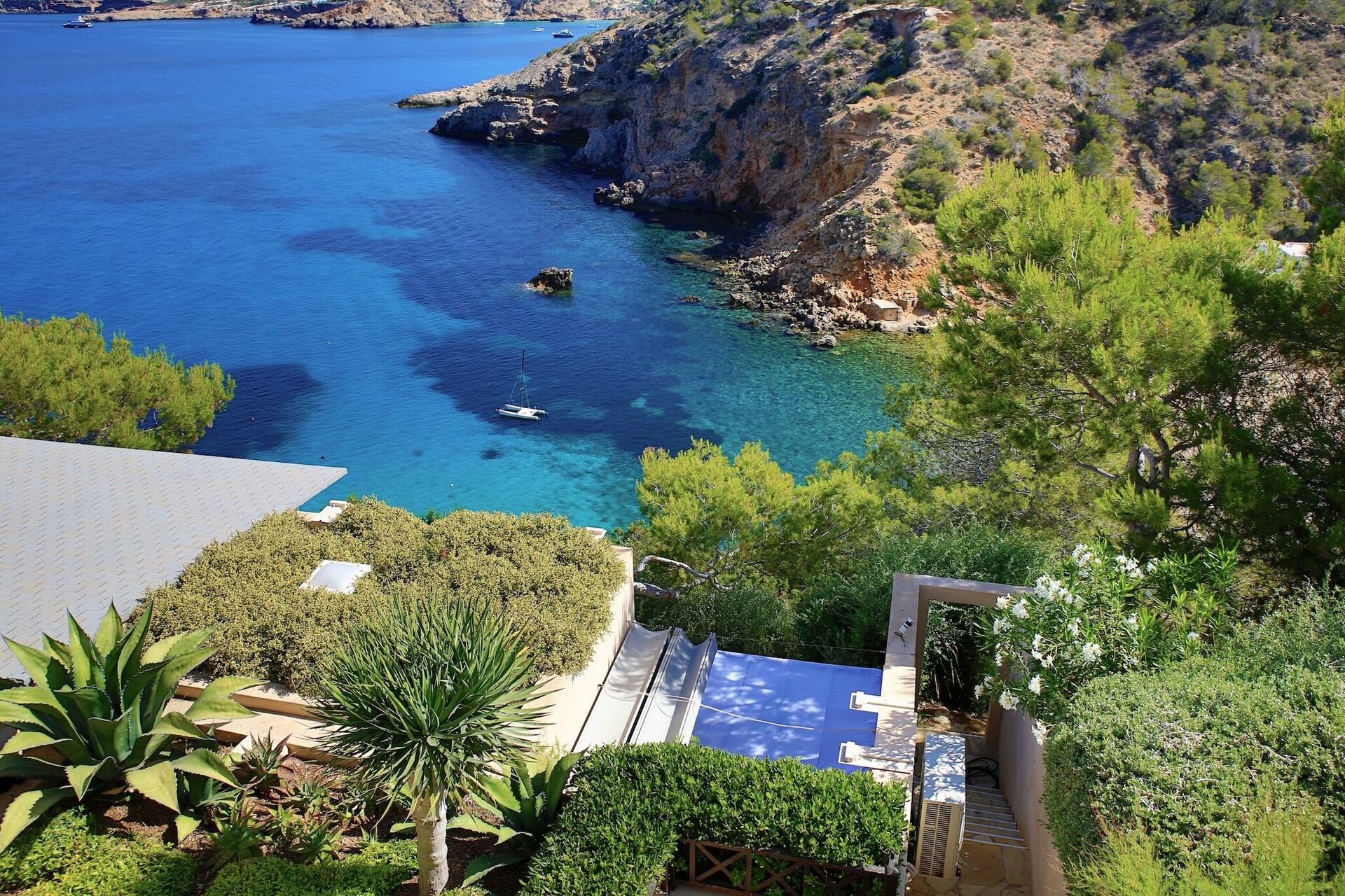 Efter en stentrappa huggen in i klippan har gästerna direkt tillgång till en liten privat vik: den perfekta platsen att uppleva Ibizas sol och kristallklart vatten!