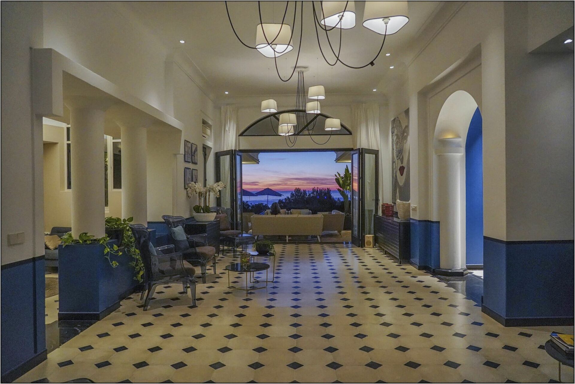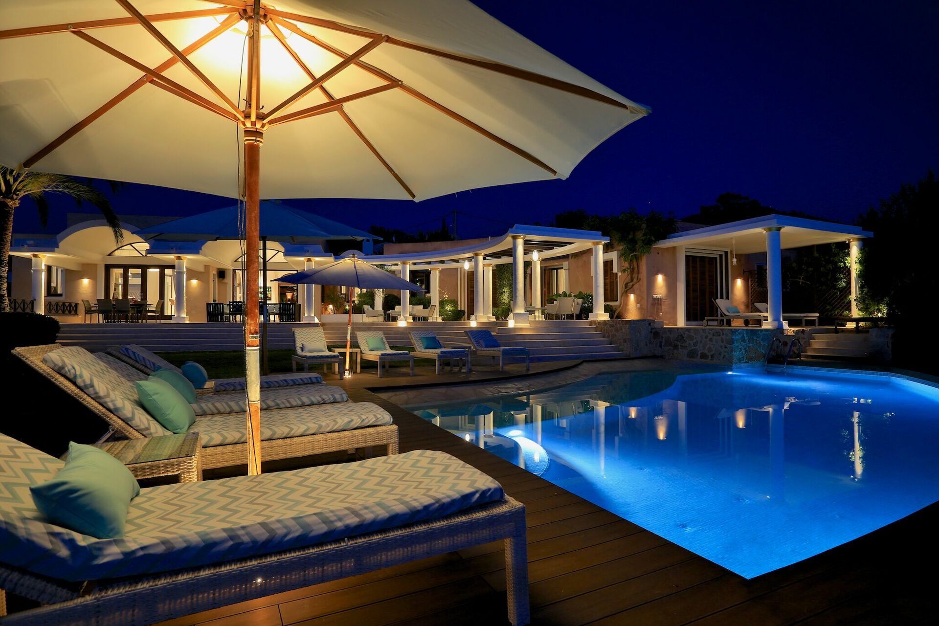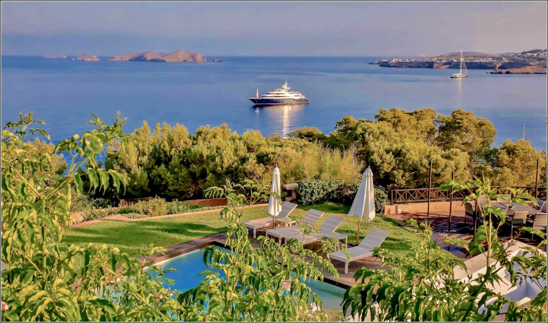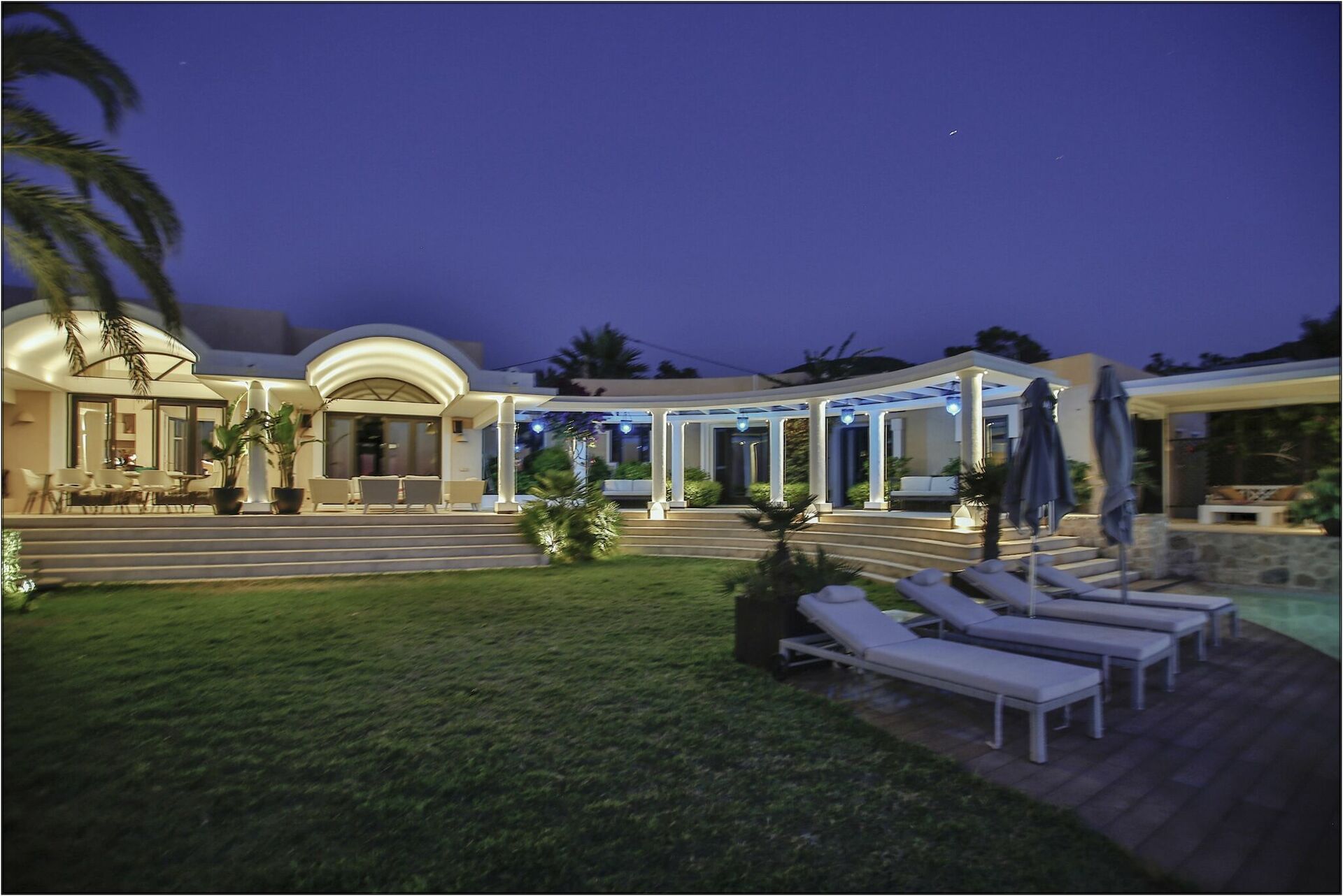 Detta unika halvmåneformade fritidshus är fördelat på två nivåer och har panoramautsikt över havet och de omgivande vikarna. Villan rymmer upp till 12 personer och består av 6 sovrum, flera gemensamma utrymmen och en elegant interiör.