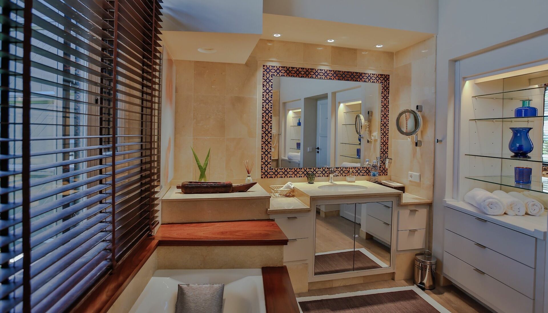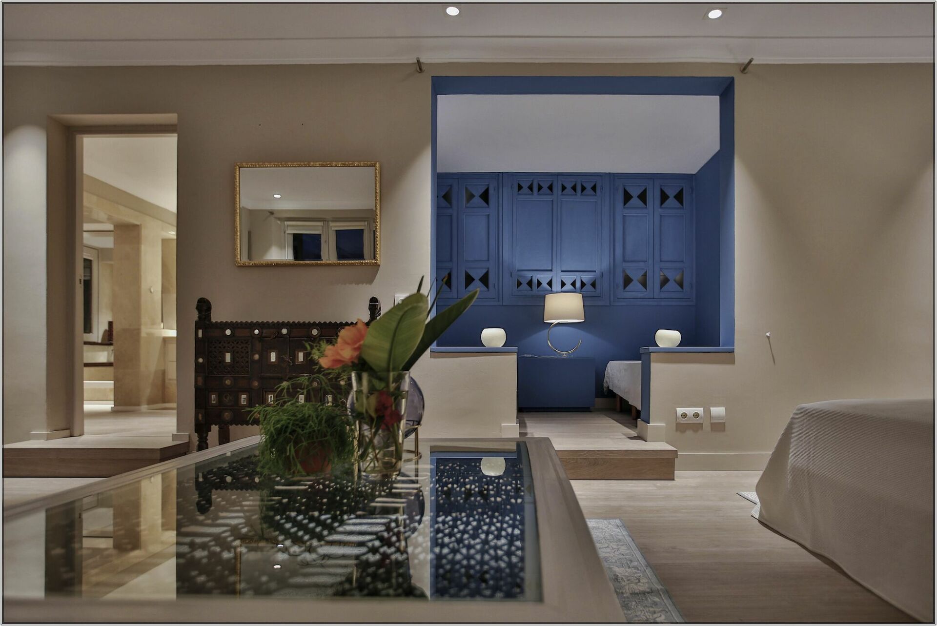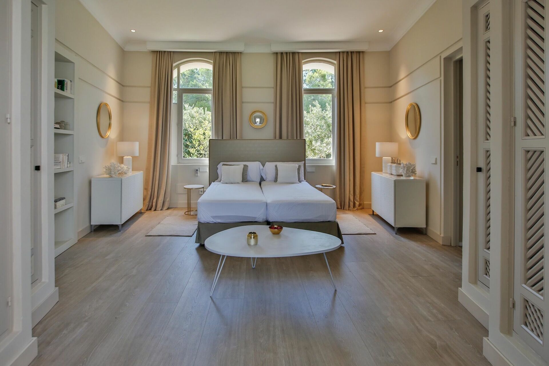 1 Master svit med king size-säng, vardagsrum, tillgång till terrass och stort eget badrum med badkar och dusch.